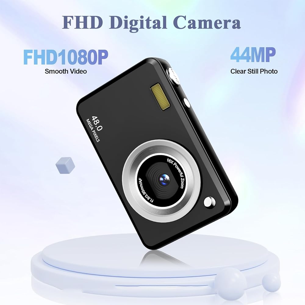 الكاميرا الرقمية ، كاميرا FHD مع بطاقة 32 جيجابايت ، حبل ، 16x Zoom Anti Shake ، 48 ميجابكسل مضغوط محمولة نقاط صغيرة هدية كاميرا طالب الأطفال في سن المراهقة