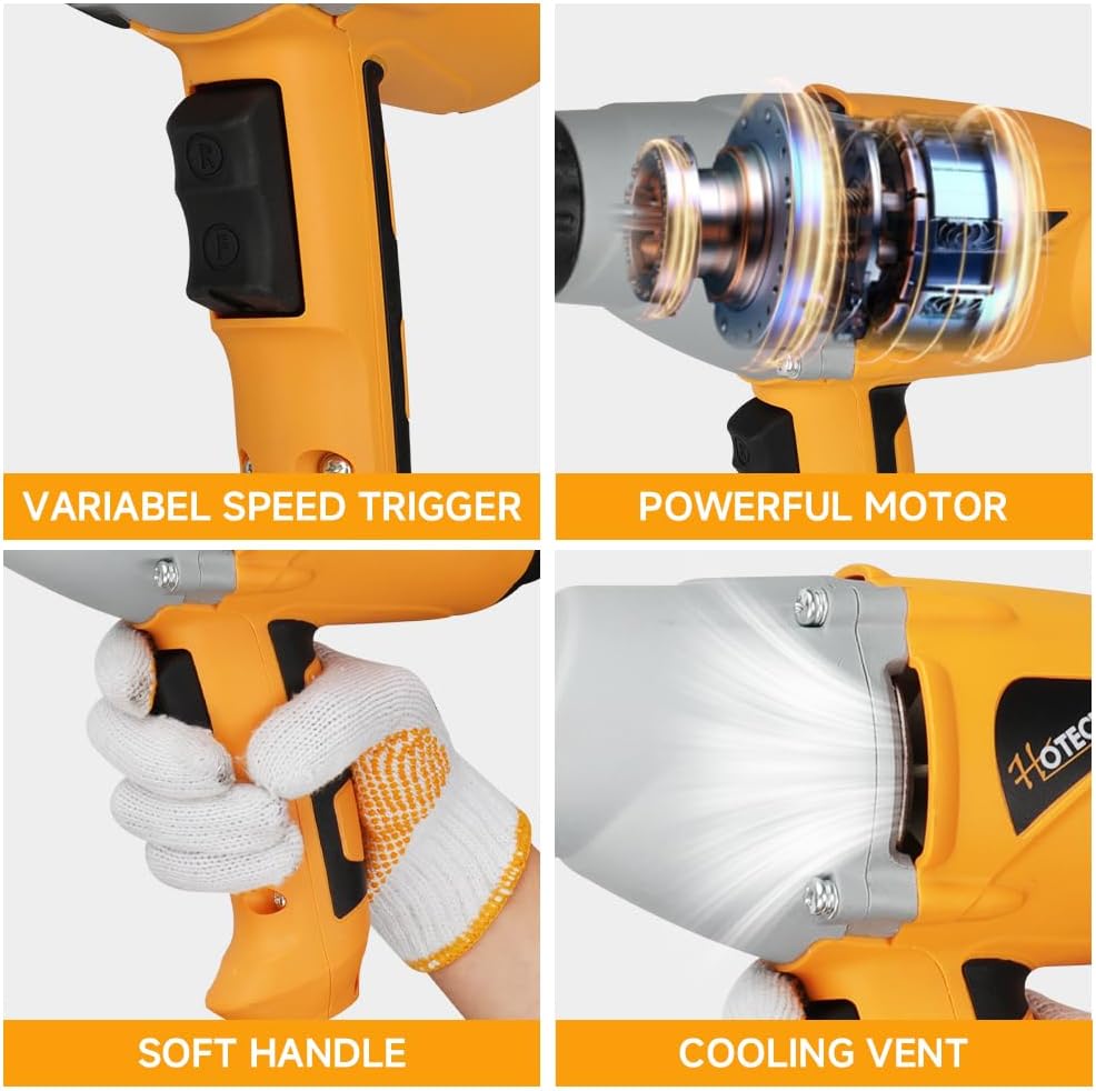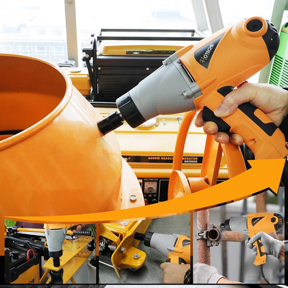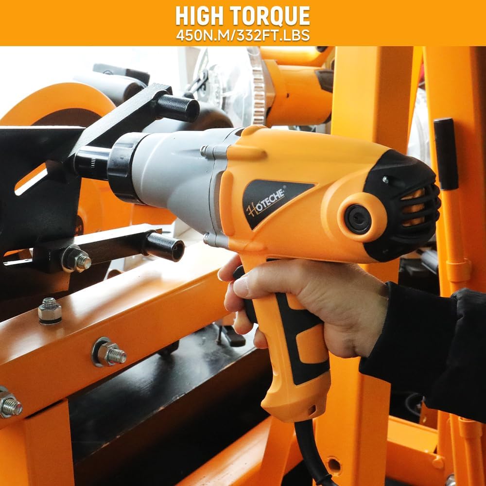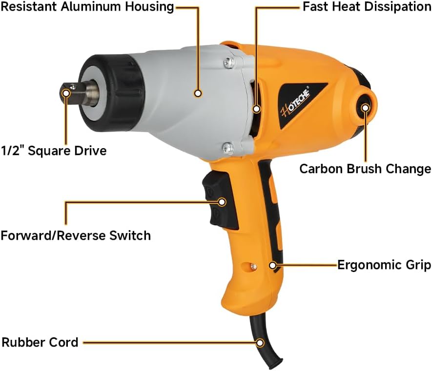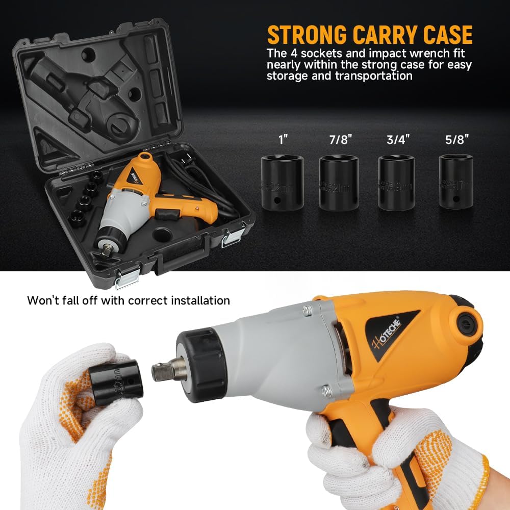 Hoteche 1/2 بوصة مفتاح التأثير المفصل ، 8.5-AMP أدوات إصلاح السيارات الكهربائية مع عزم الدوران 332 قدم رطل يشمل 4 مآخذ (1 "، 7/8" ، 3/4 "، 5/8") للسيارات و DIY إصلاحات
