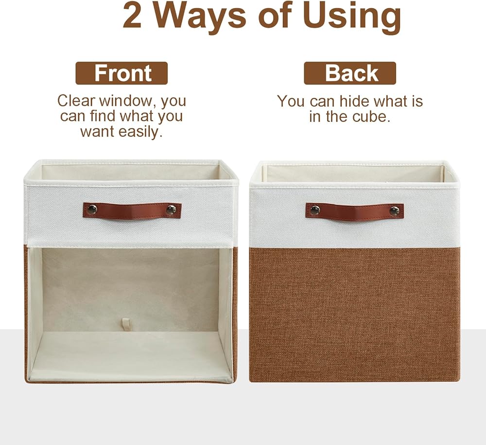 • تفاصيل رائعة: مقابض مكعبات التخزين مصنوعة من الجلد الناعم ، متين وكلاسيكي. تساعد من الورق المقوى عالي الجودة 2.5 مم على الجانبين وأسفل صناديق التخزين على الحفاظ على حازم وغير محدد. يتم خياطة الورق المقوى الثقيل الموجود في الجزء السفلي مع النسيج السفلي حتى لا تفقده أو تنساه عند طي المكعبات.
