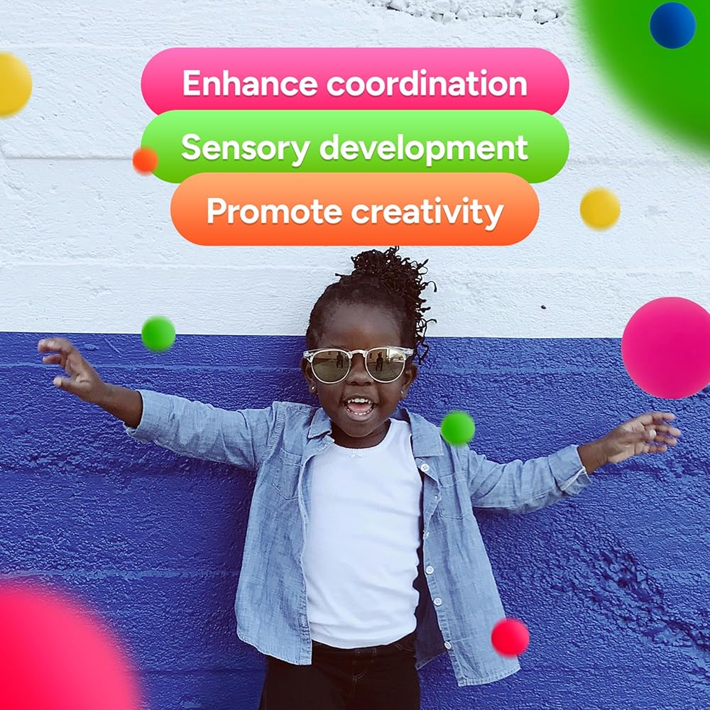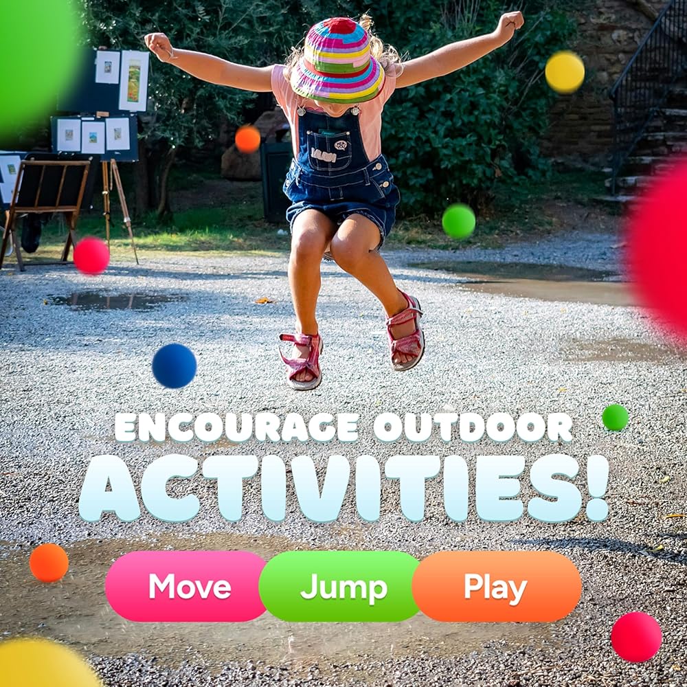 Big bouncy balls come in a bucket with 12 pcs inside. Be aware - these high bounce balls may be too bouncy and hard for toddlers and little kids. These bounce balls do float in water