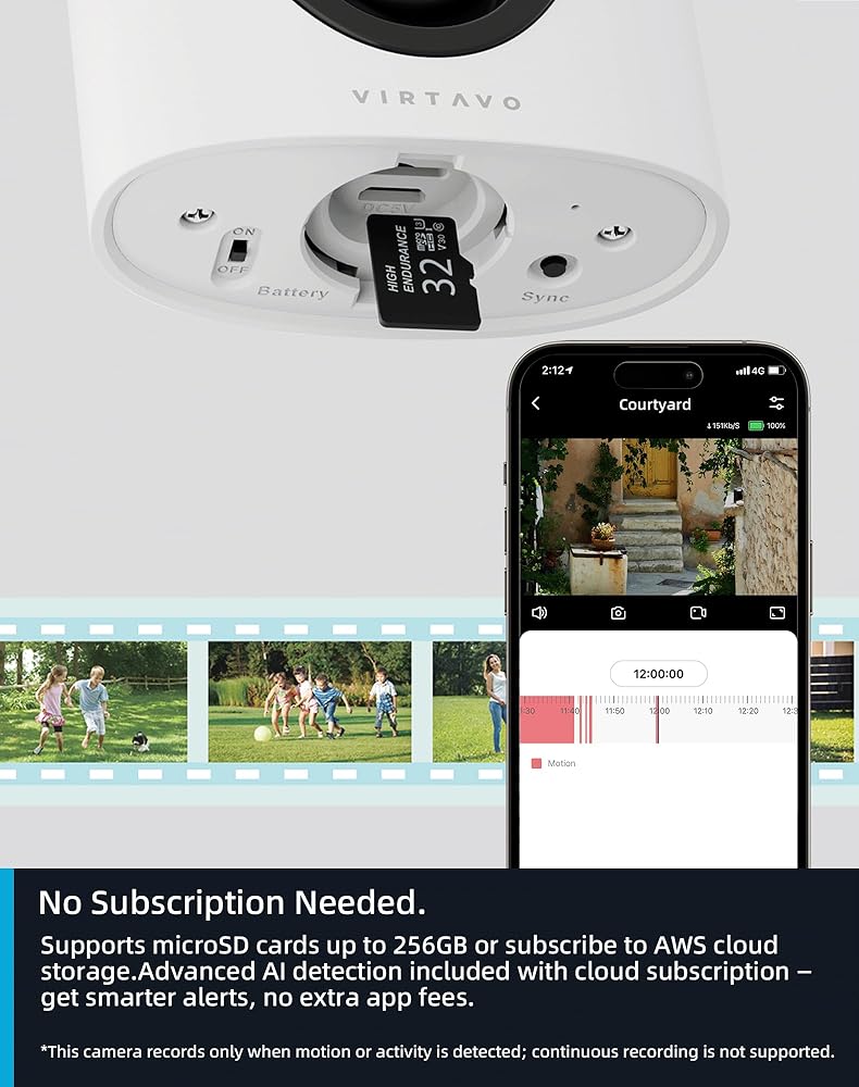 【تخزين وخصوصية البيانات المرنة】 اختر خيار التخزين الذي يناسب احتياجاتك. استخدم بطاقة SD (من 32 جيجابايت إلى 256 جيجا بايت) للنسخ الاحتياطي المحلي ، حتى أثناء انقطاع الشبكة ، أو اختيار تخزين السحابة المشفرة مع سجل فيديو مدته 7 أو 30 يومًا. بياناتك ، اختيارك.