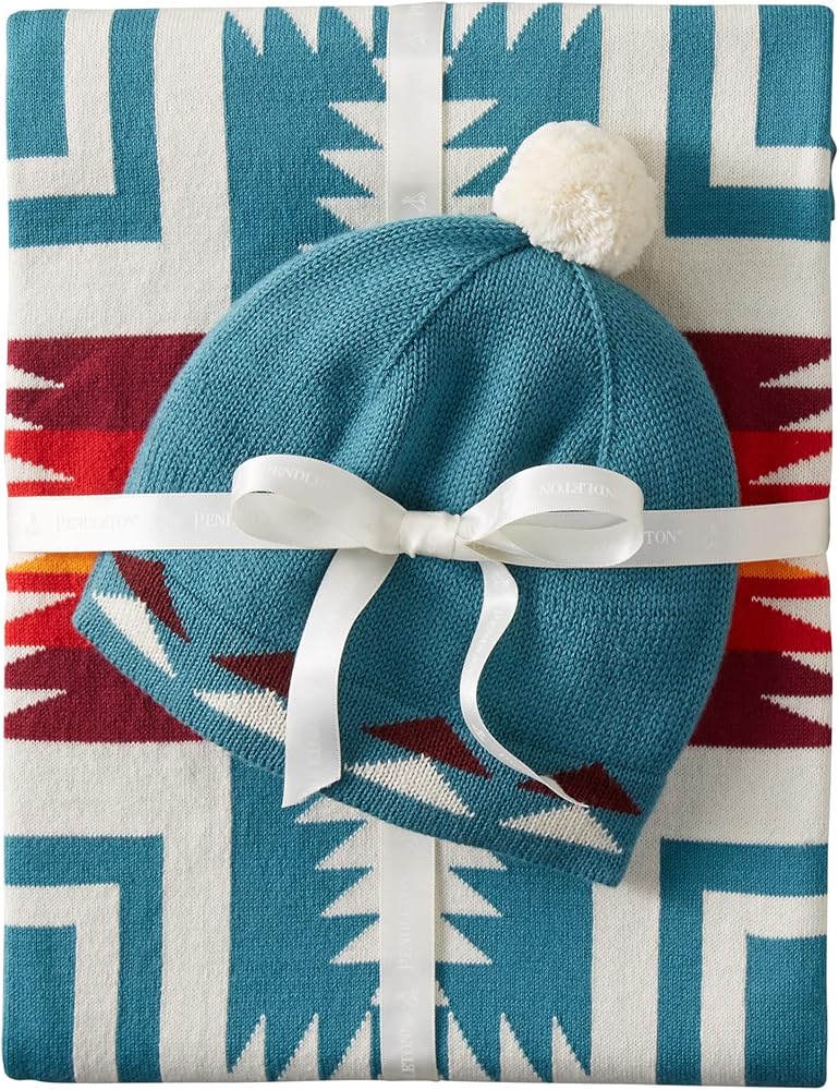 Cuddle your new arrival with this soft, machine-washable cotton knit blanket, with a matching knit beanie for your favorite little head. A lovely, sure-to-be-appreciated gift. Cap fits 6-12 months.