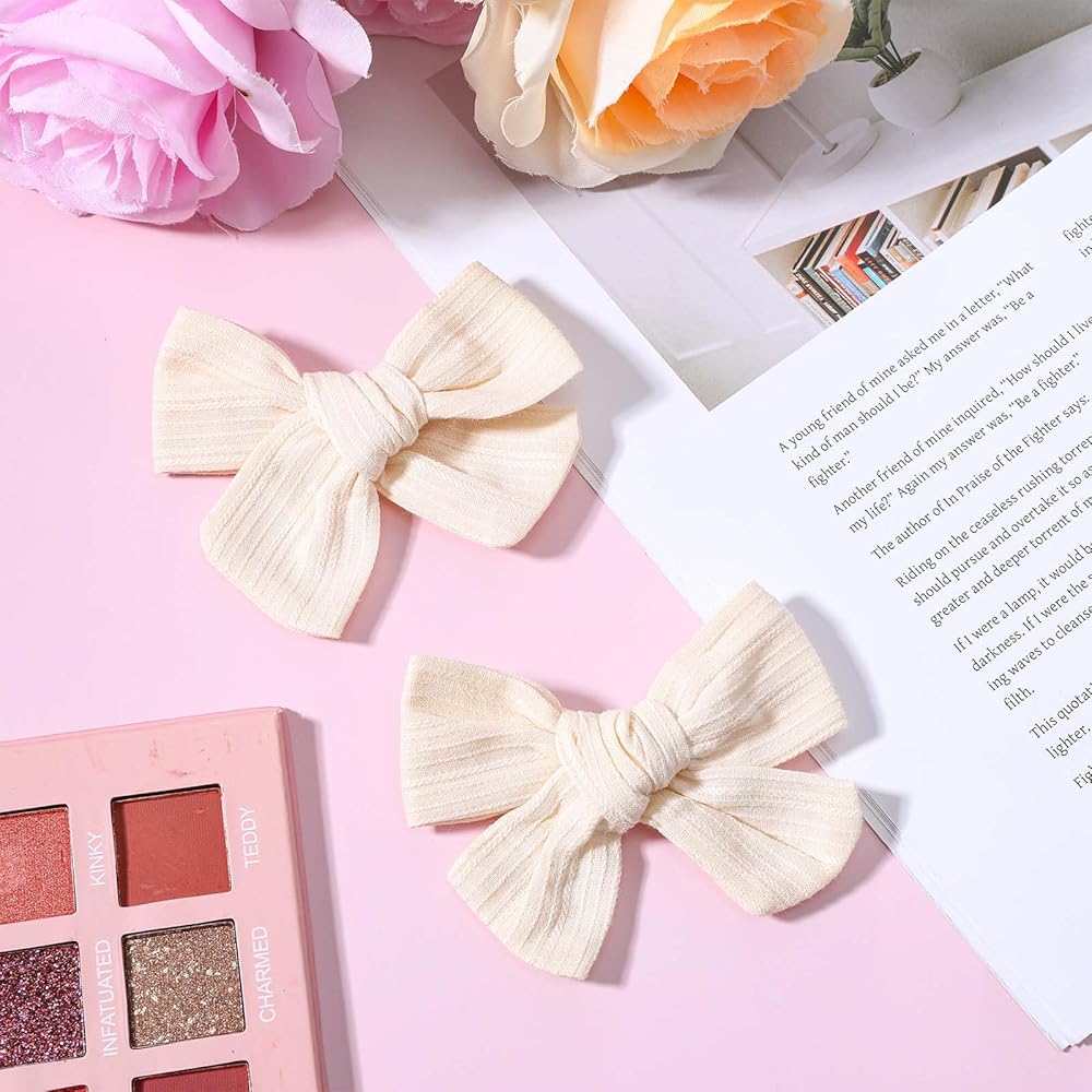Cute and fashionable: The cream bow set has a charming and neutral color that complements any outfit. The bow measures 3.35 inches in length and 2.3 inches in width, adding a touch of elegance to your little girl's look, making her look cute and charming.