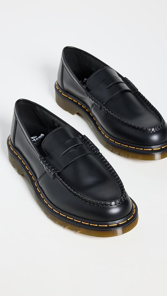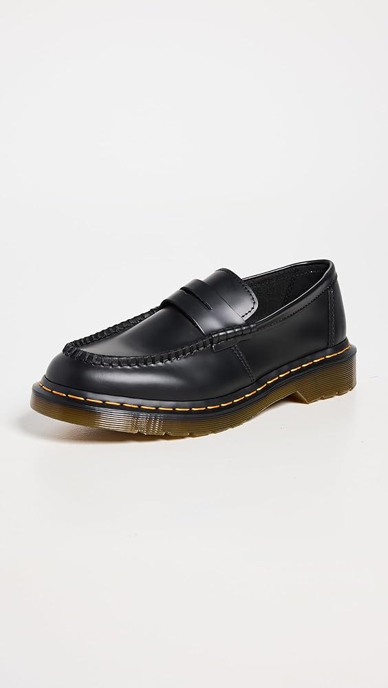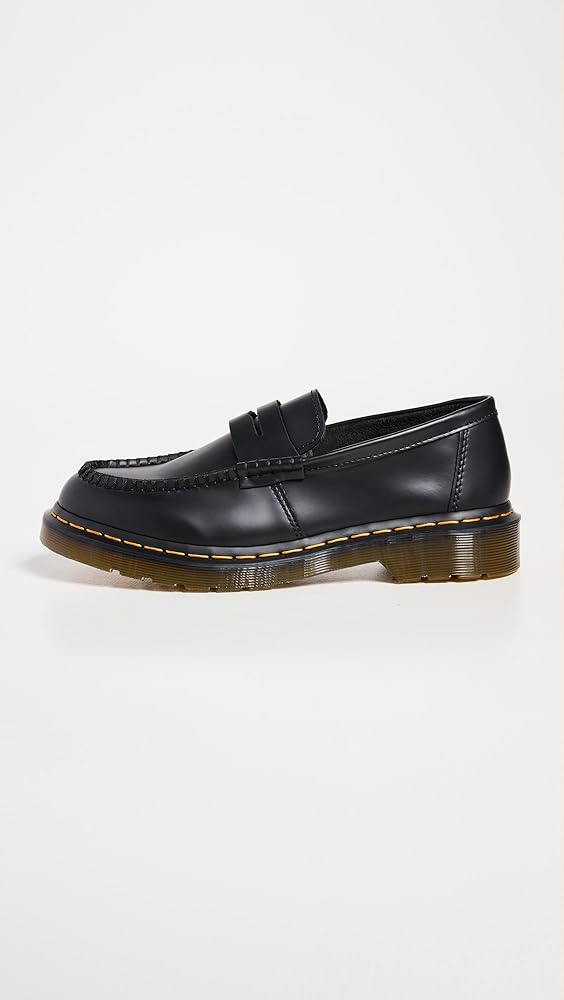 The Penton loafer has a deep-set heritage. Built from Docs classic black Smooth leather and constructed with a wider fit for enhanced comfort. The Penton stands on a grooved AirWair outsole secured by yellow welt stitching.