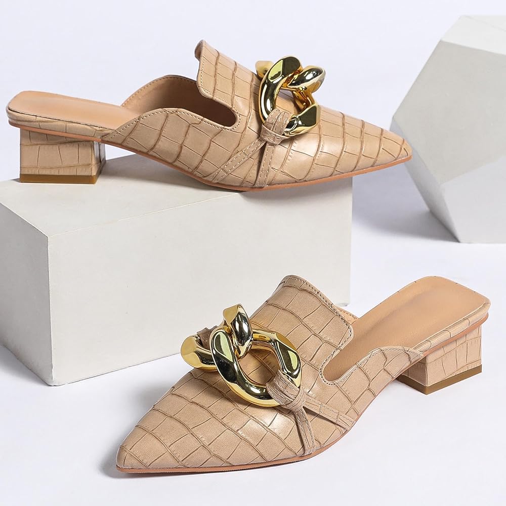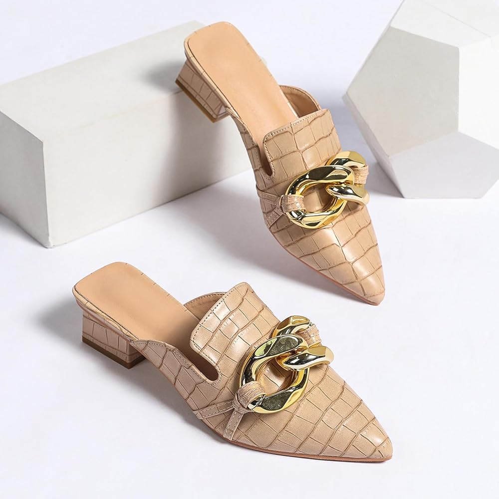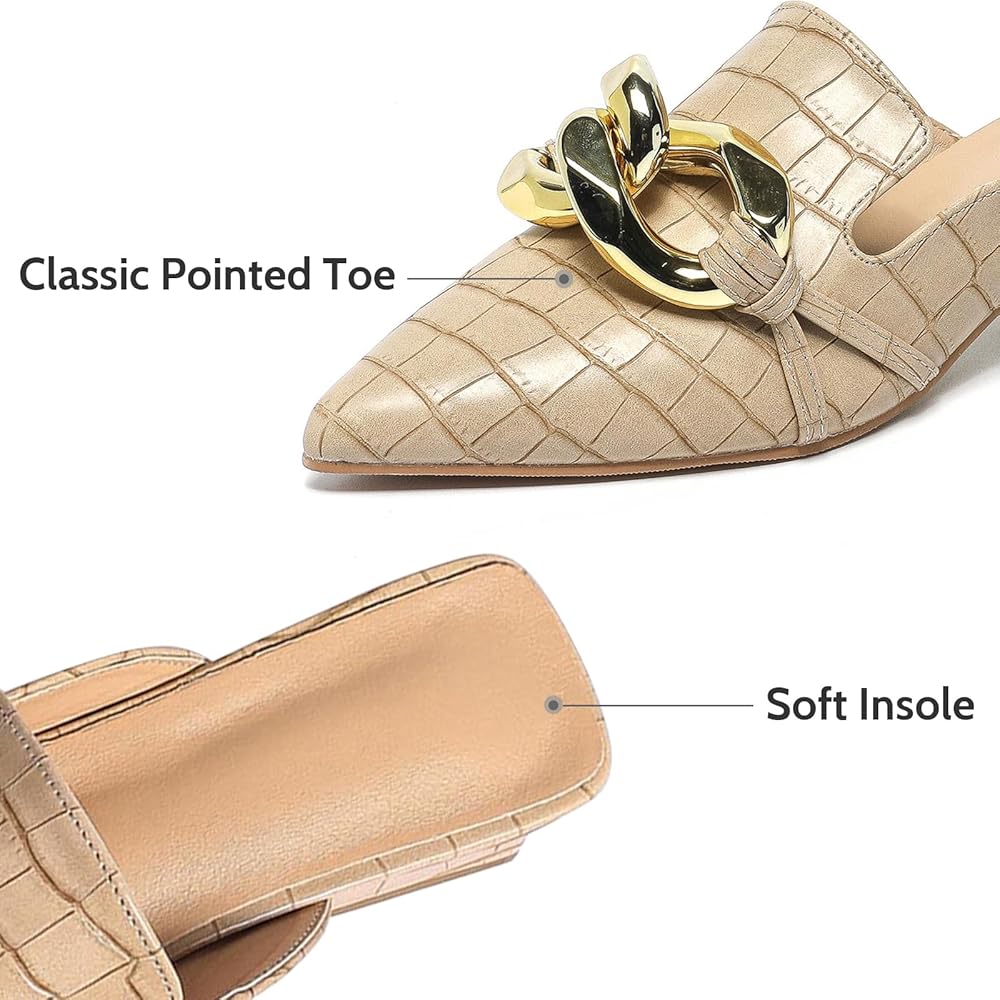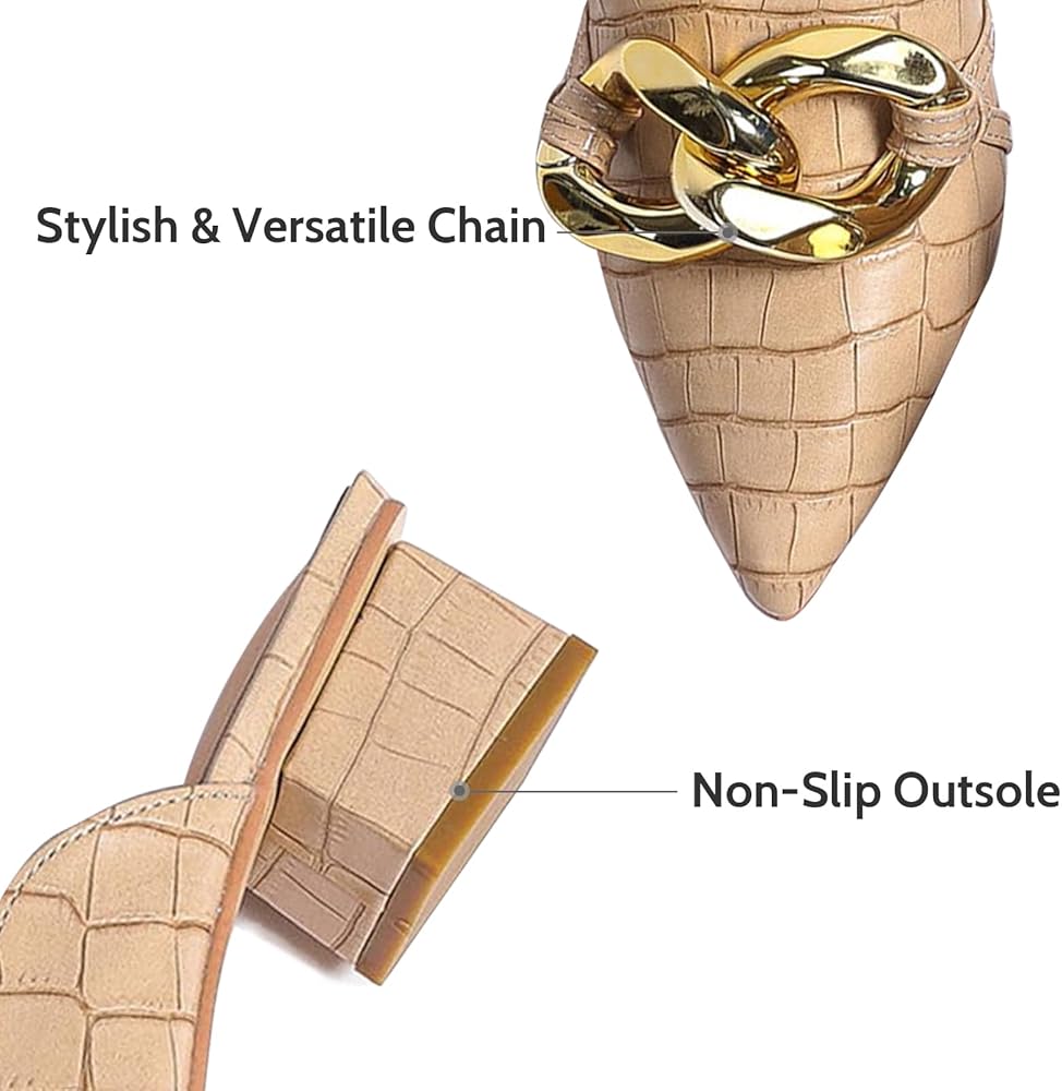 ستراتوكسكس كازي للبغال المكتنزة للسيدات تنزلق على متسكعات مقدمة من إصبع القدم المغلقة مع سلسلة معدنية للنساء بحجم 6-10