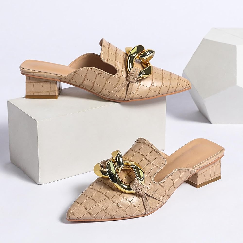 • تصميم السلسلة المعدنية: البغال الكلاسيكية المغلقة المغلقة مع ديكور مشبك معدني عصري ، مما يجلب لك نظرة edlgy ، هي مزيج مثالي من الأناقة والجاذبية.