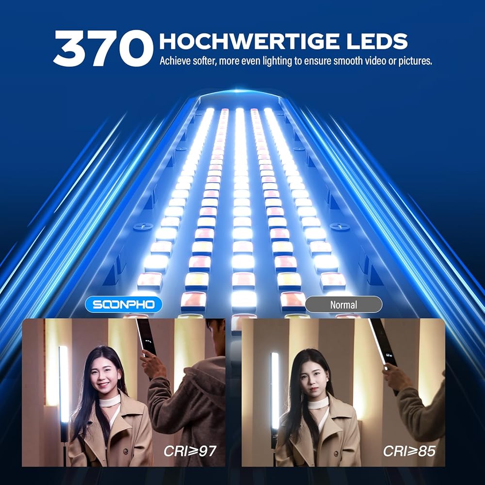 تتميز عصا ضوء RGB بوضع CCT لضبط درجة حرارة اللون بدقة من 2500 كيلو إلى 8500 كيلو. مع تصنيف CRI في 97 و TLCI في 97 , مثالي لتسجيل الفيديو على YouTube ، المدونة ، والألعاب ، البث المباشر ، التصوير الفوتوغرافي للمنتجات.