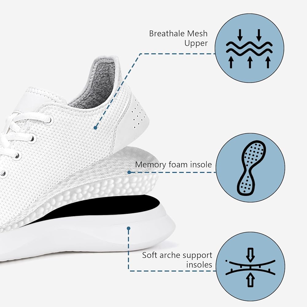 【الدعم القوس وتصميم إصبع القدم الواسع】 تتميز هذه الأحذية الرياضية للنساء بعملة مريحة وسادة رغوة الذاكرة مع دعم قوس ممتاز ، مثالي للوقوف لفترات طويلة أو العمل طوال اليوم. يوفر تصميم أحذية إصبع القدم الواسع مساحة كبيرة لتمدد أصابع قدميك ، مما يقلل من الضغط وتعزيز الراحة.