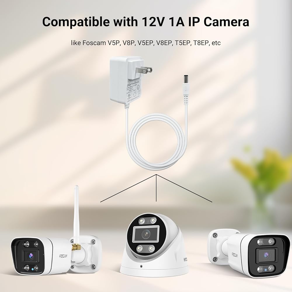 FOSCAM 12V/1A DC/AC Power Charger Adapters for V5EP V8EP T5EP T8EP V5P Wired Wireless Security IP Cameras, US Standard
