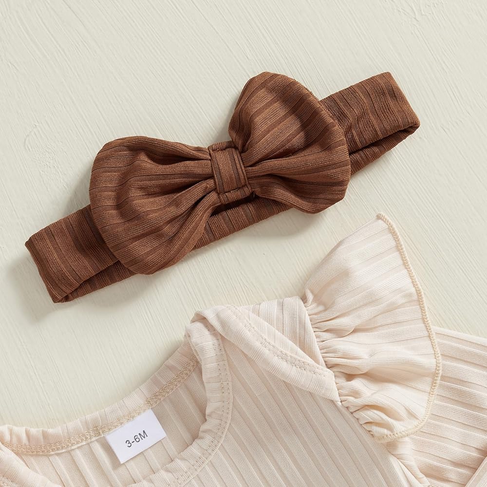 Western baby girl clothes; Baby girl romper with cow embroidery, ruffles, round neckline, long sleeves; Baby girl pants with cute bow, elastic waist design, and cute headband set; Make your little one cute and charming