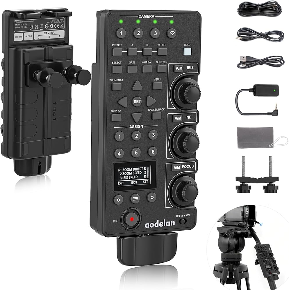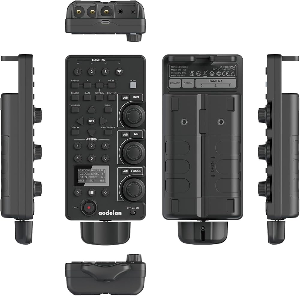 Camera and Lens Control - يقدم جهاز التحكم عن بُعد Aodelan ZC -4 إدارة دقيقة لوظائف الكاميرا الرئيسية مثل تسجيل الفيديو وإعدادات العرض وسرعة الغالق وتوازن اللون الأبيض. كما يوفر خمسة مستويات من تعديل التركيز اليدوي والتكييف التلقائي ، وثلاثة مستويات من التحكم في القزحية والتكبير ، وإعدادات مرشح ND للتعرض الأمثل ، مما يضمن نتائج من الدرجة المهنية في كل تبادل لاطلاق النار.