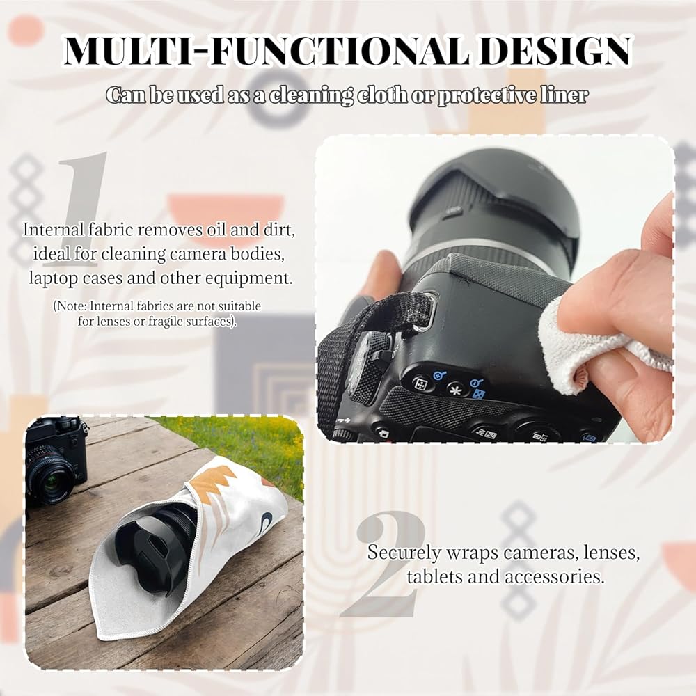 The BOROLA Self-Adhesive Camera Lens Wrap is a versatile protective cloth designed for photographers and gadget enthusiasts.