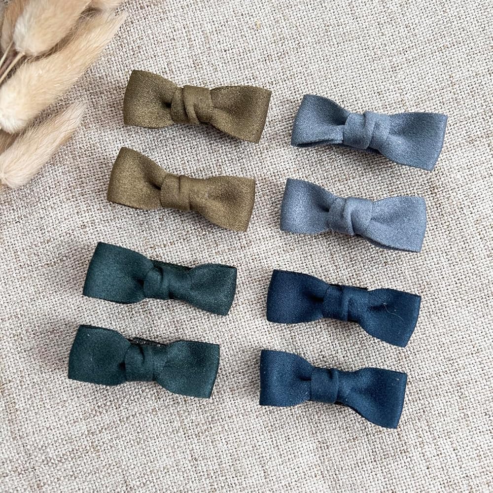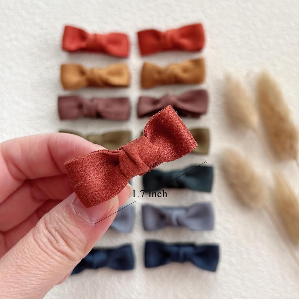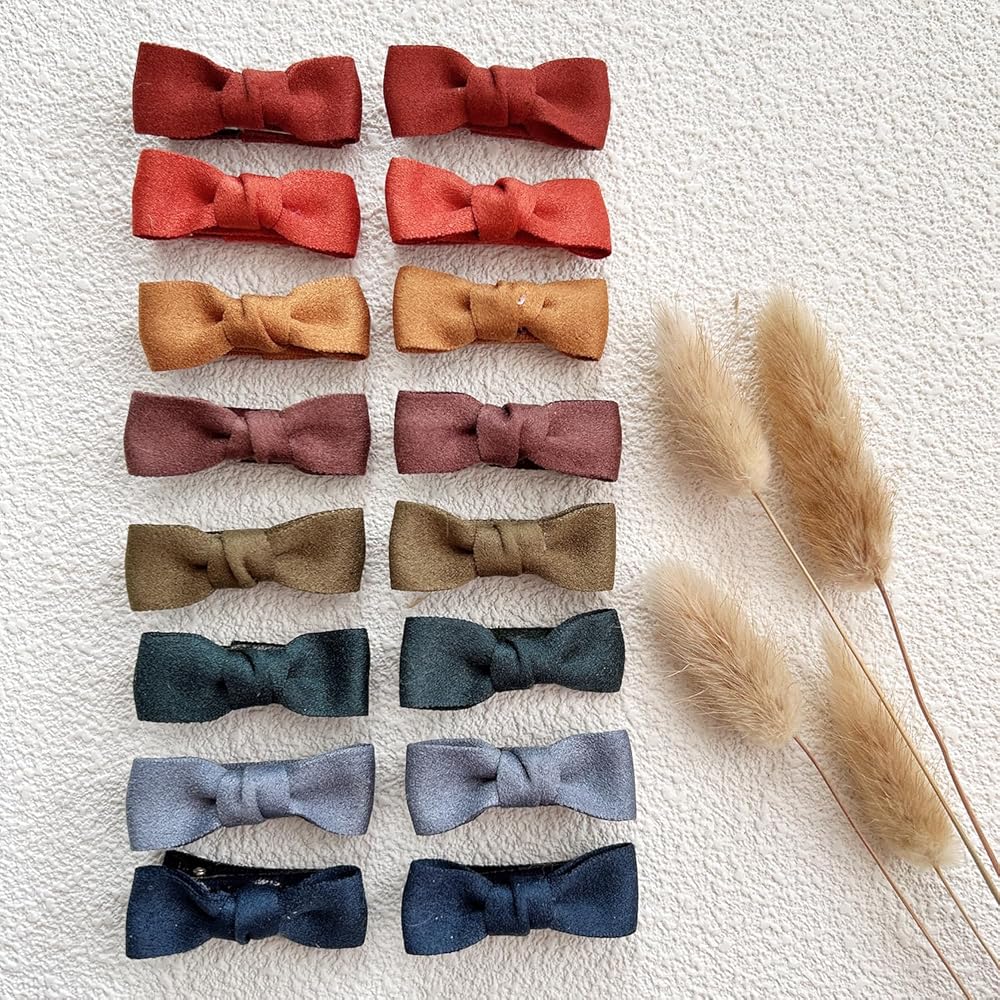 Package include: You will get a package with 16pcs hair clips, 8 color, each color features 2pcs. Adorable Design: Child-Friendly Designs, Versatile colors give you more options for different outfits. Material:Cotton,linen fabric.All the products have been tested and are safe for use. Clips Size: 1.7" for the bow. Great Gift Choice: All the clips are packed in the orgainzer box,it's convenient to store. It's a good gift choose for girls, toddlers, kids, teens.