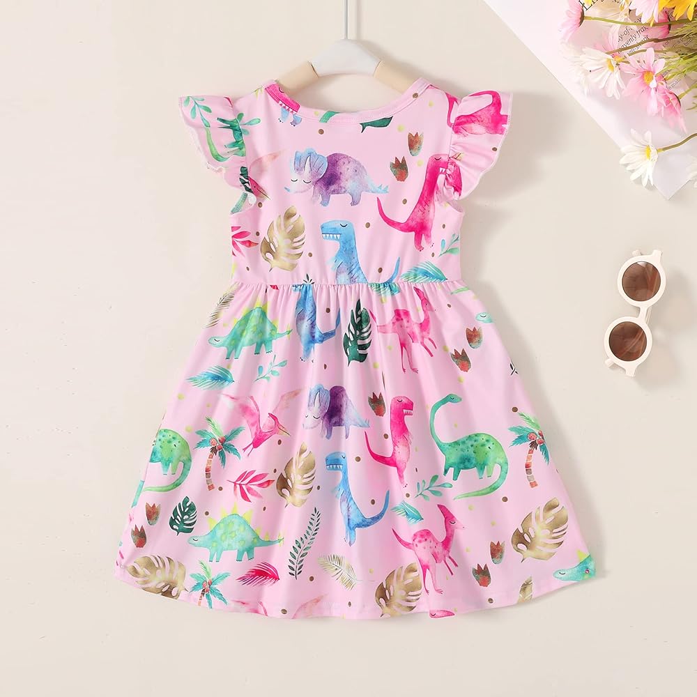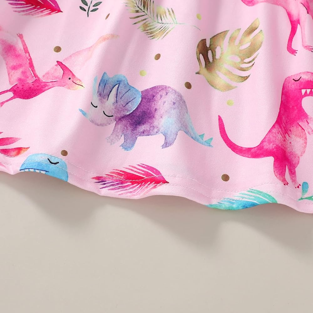 - التصميم: فستان ديناصور صغير مع خصر مرن وتصميم لطيف Flysleeve و Great for Baby Girls Party Dress واللباس غير الرسمي