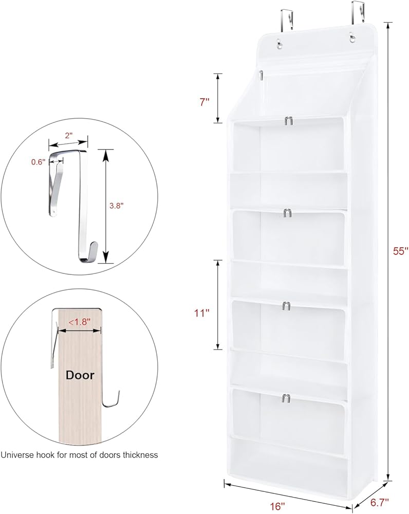 استخدامات متعددة الاستخدامات للتخزين. Univivi خلف تخزين الباب مثالي لتنظيم المناشف ومستحضرات التجميل والملابس ومنتجات الأطفال والغزل وغيرها من أشجار الشمس ، وحمايتها من الغبار والرطوبة. إنه حل جيد للتخزين للحمام وغرفة النوم ومخزن وغرفة معيشة وحضانة.