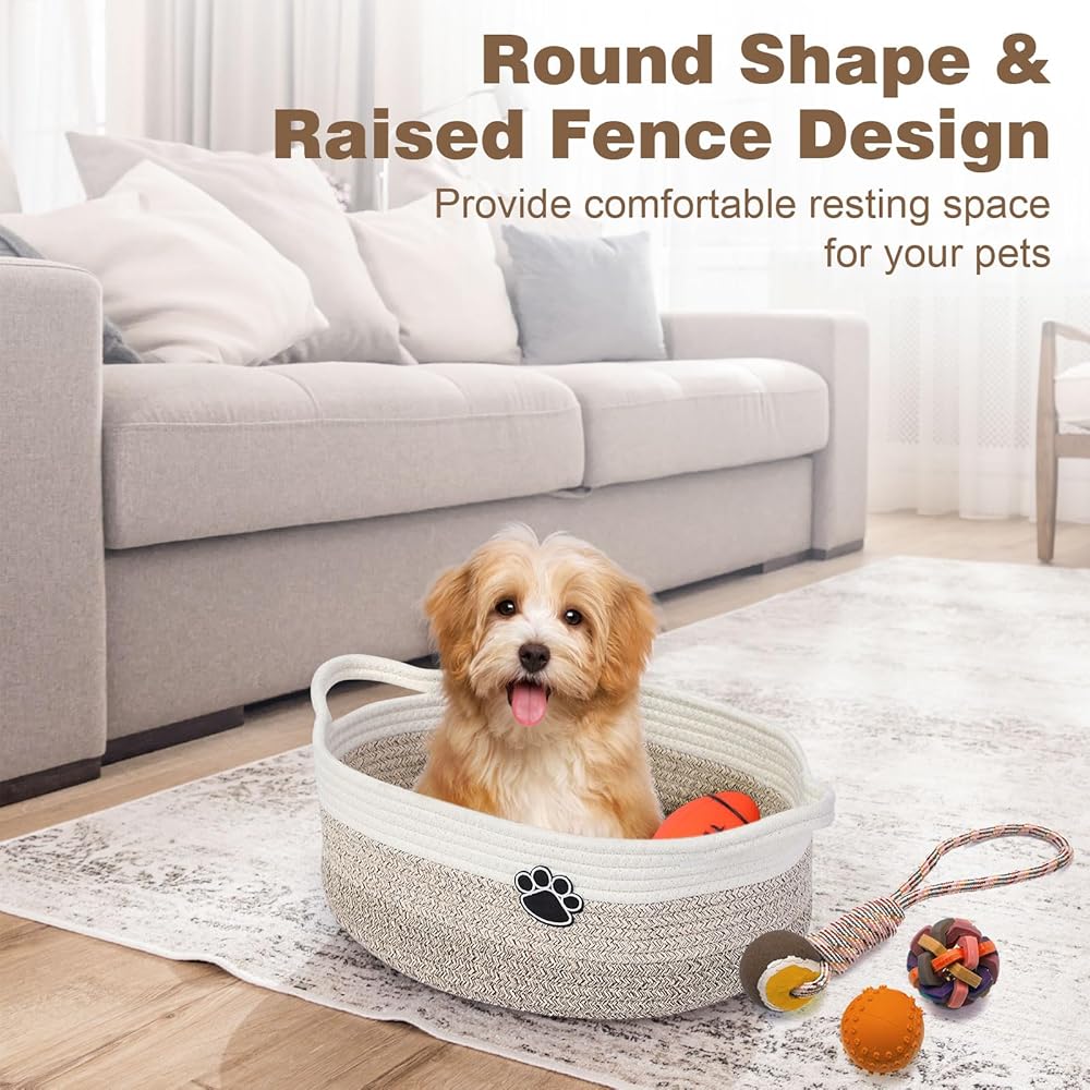 Durable Woven Basket: Made of soft cotton rope material, the raised fence design promotes ultimate comfort and security, offering your pet a variety of cozy positions to snuggle. Its seamless design enhances durability and will not be scratched or bitten by pets