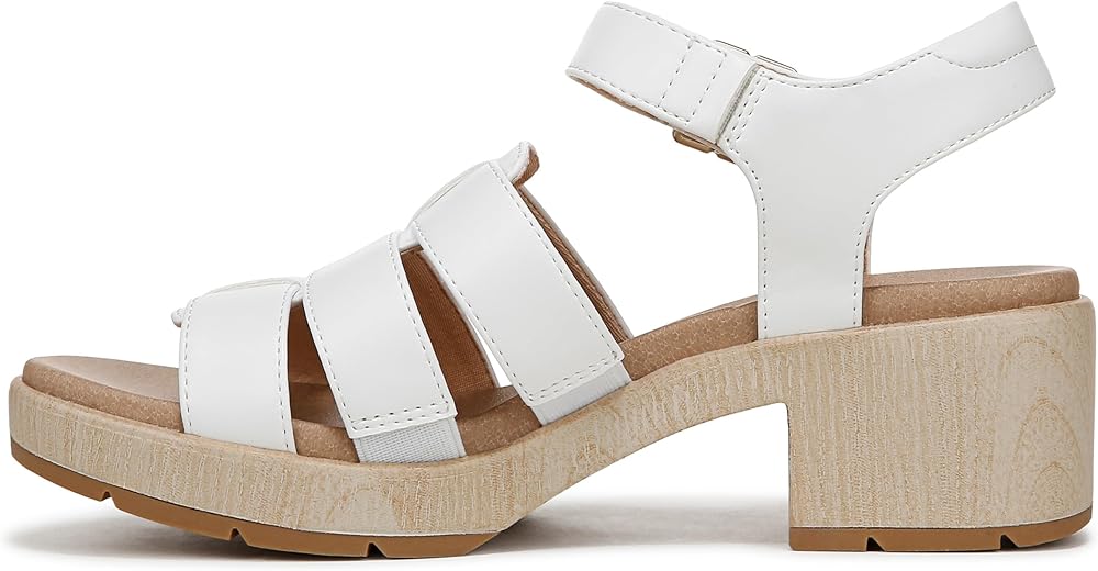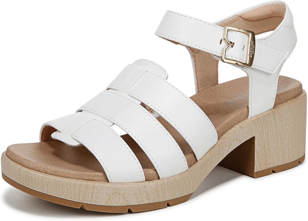 Dress sandals for women with a strappy design and retro-inspired block heel. SUSTAINABLY CRAFTED: Fabric lining partially made from recycled plastic bottles and low chemical faux leather topcloth. MATERIALS: Low chemical faux leather upper. FIT: Easy hook and loop closure on ankle strap. FEELS: Insole Technology with cushioning, comfort, & support. STYLE: Womens sandal with fisherman-inspired caged straps, iconic buckle detailing, 2 inch block heel and blown TPR outsole. CONSCIOUSLY PACKAGED: This style is shipped in an environmentally preferred 1-piece box made with primarily recycled materials that can be recycled & soy-based inks. These platform sandals are perfect to wear to work or for play, with their sleek, sunny silhouette.
