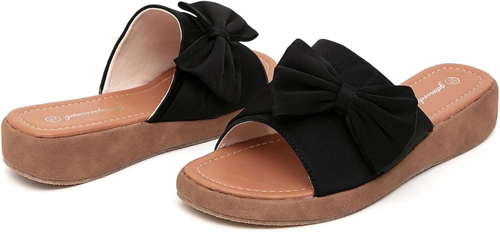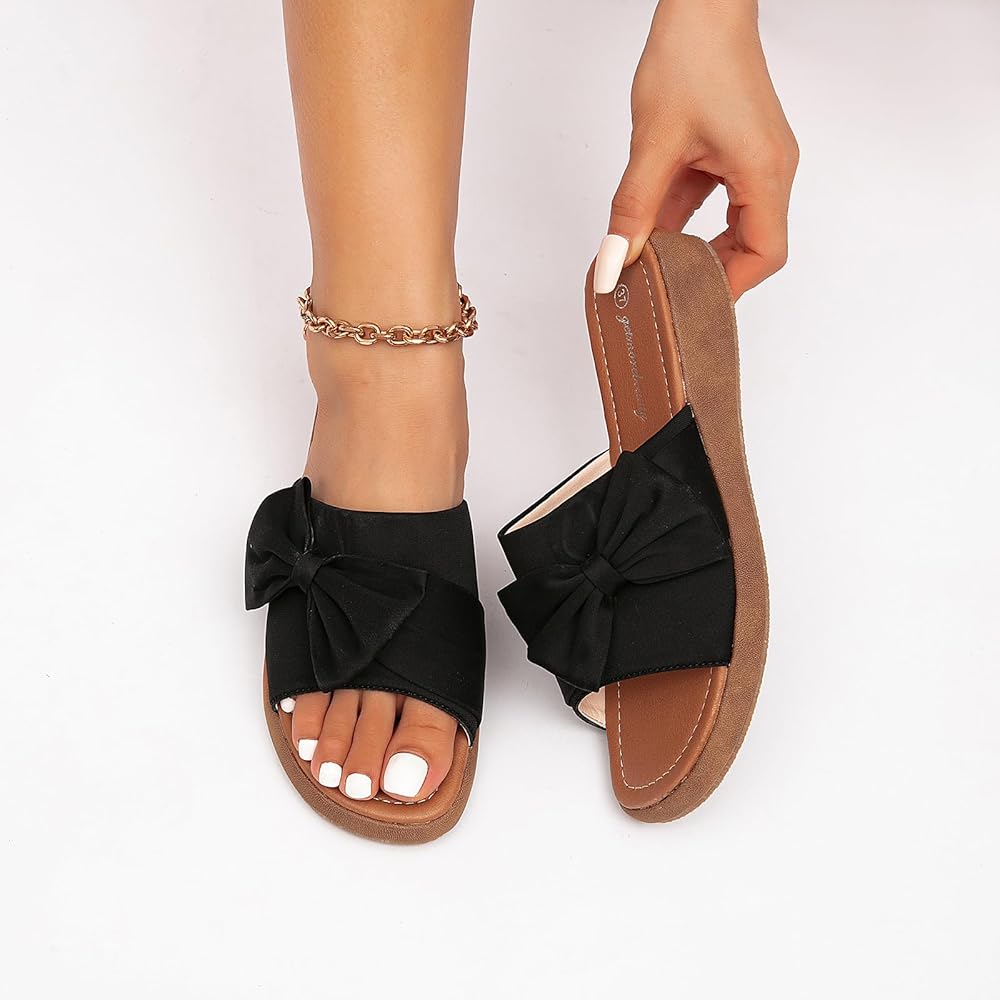 【Effortless Slip On Style】These bow sandals can be as a slides sandals or slippers, which can eliminate the need to untie and tie laces. Enjoy the convenience of slip-on mules sandals, perfect for on-the-go lifestyles.