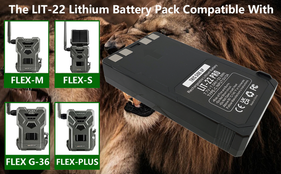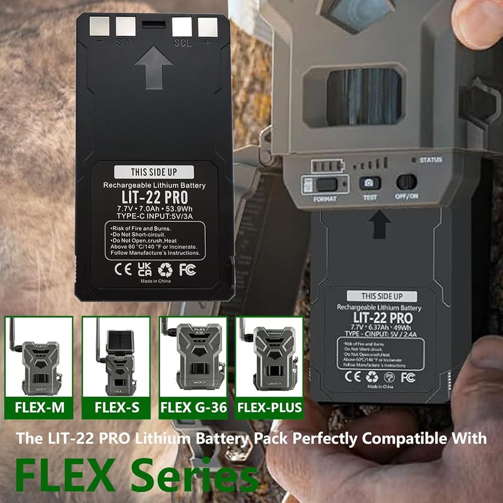 Lit-22 قابلة لإعادة الشحن حزمة بطارية الليثيوم متوافقة مع كاميرا درب خلية فليكس فليكس-فليس فليكس-G36 Flex-S (تضمين كبل النوع C) 7.7v 53.9wh 7000mAh