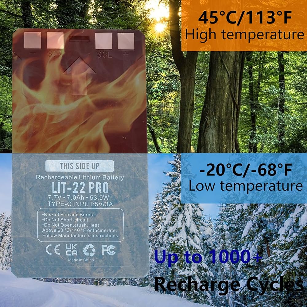 • 【القدرة على التكيف في درجة الحرارة القوية】 تم تصميم بطارية استبدال 7.7 فولت LIT-22 التي تمت ترقيتها من أجل القدرة على التكيف الاستثنائية لدرجة الحرارة ، والاستبدال لبطارية 7.4 فولت Lit-22 الأصلية ، مما يضمن أن كاميرا الصيد تعمل بشكل موثوق في ظروف الطقس المتنوعة على مدار العام.