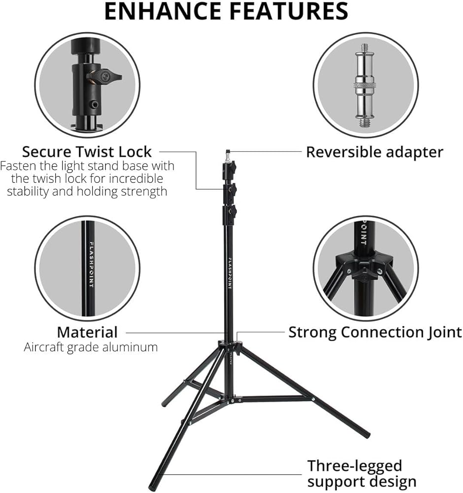 - Flashpoint Light Stand, 7', 1 Year USA Warranty.