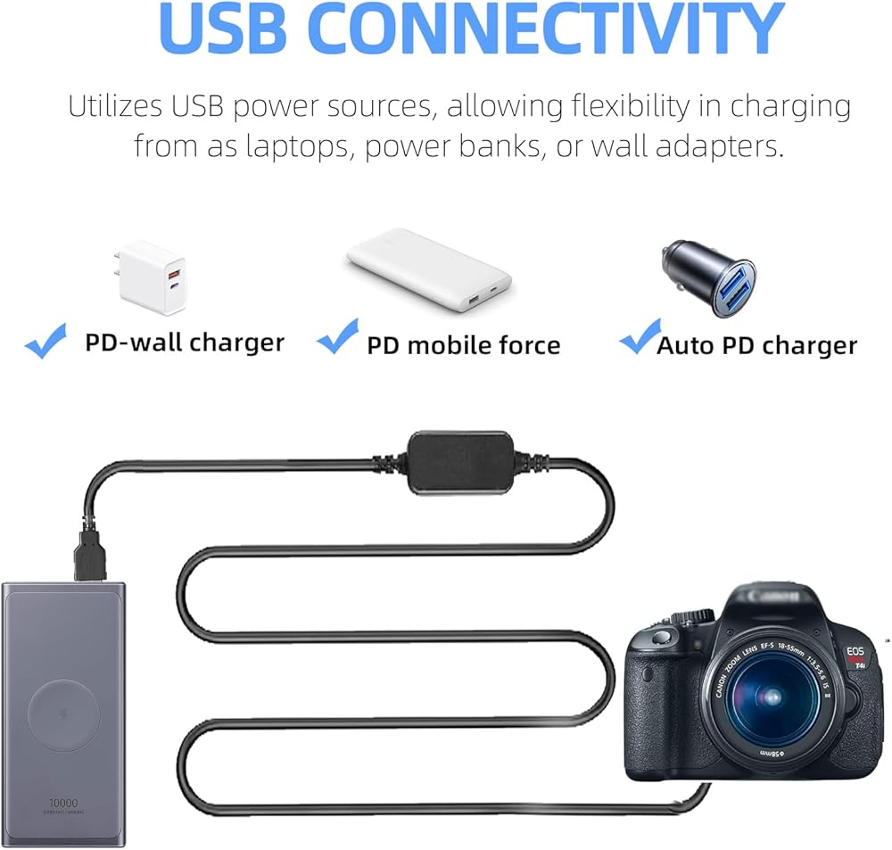 DR-E8 Dummy Battery Suit USB DC Converter Power Cable
