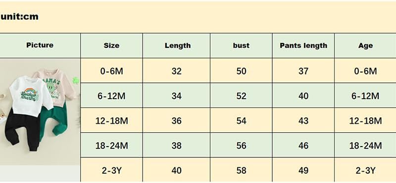 الحزمة: تتضمن مجموعة St Patrick's Day Pant قميصًا طويلًا وأكمامًا طويلة من النوع الثقيل مع طباعة البرسيم اللطيفة ، مثالية للاحتفال بالعطلة بأناقة.