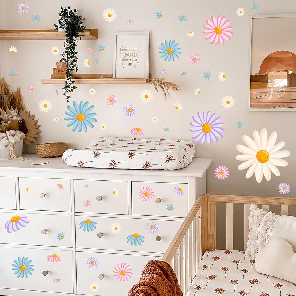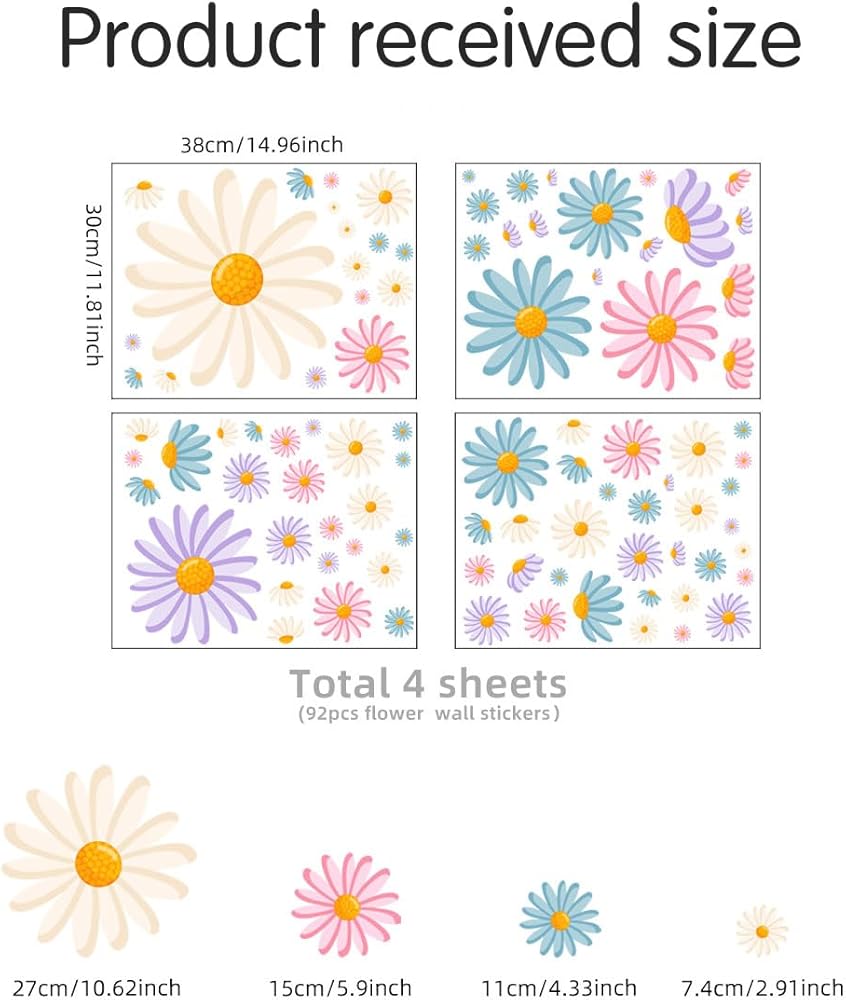 WHAT YOU WILL RECEIVE: Made Of High Quality Vinyl, Daisy Flower Wall Decals, Flower Size Is (14.96 Inches * 11.81 Inches * 3 sheets) Decals Are Durable. Over Time, They Will Maintain Their Vibrant Colors And Intricate Details, Ensuring Your Decor Is Beautiful.
