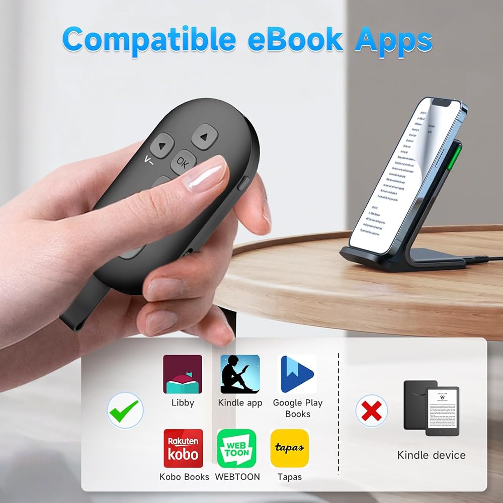 【صفحة Turner Remote لتطبيقات Kindle App eBook】 لاحظ أنه لم يكن مستمراً لجهاز Kindle ، يرجى عدم شرائه لجهاز Kindle. إنها صفحة تيرنر عن بُعد للهواتف الذكية والأجهزة اللوحية. يمكن لصفحة Bluetooth هذه العمل في معظم تطبيقات الكتب الإلكترونية والكاريكاتير مثل: Kindle App و Google Play Books App و Marvel Comics App وما إلى ذلك. لا تضطر إلى تمرير إصبعك لتحويل الصفحة عند قراءة كتاب إلكتروني على هاتفك.