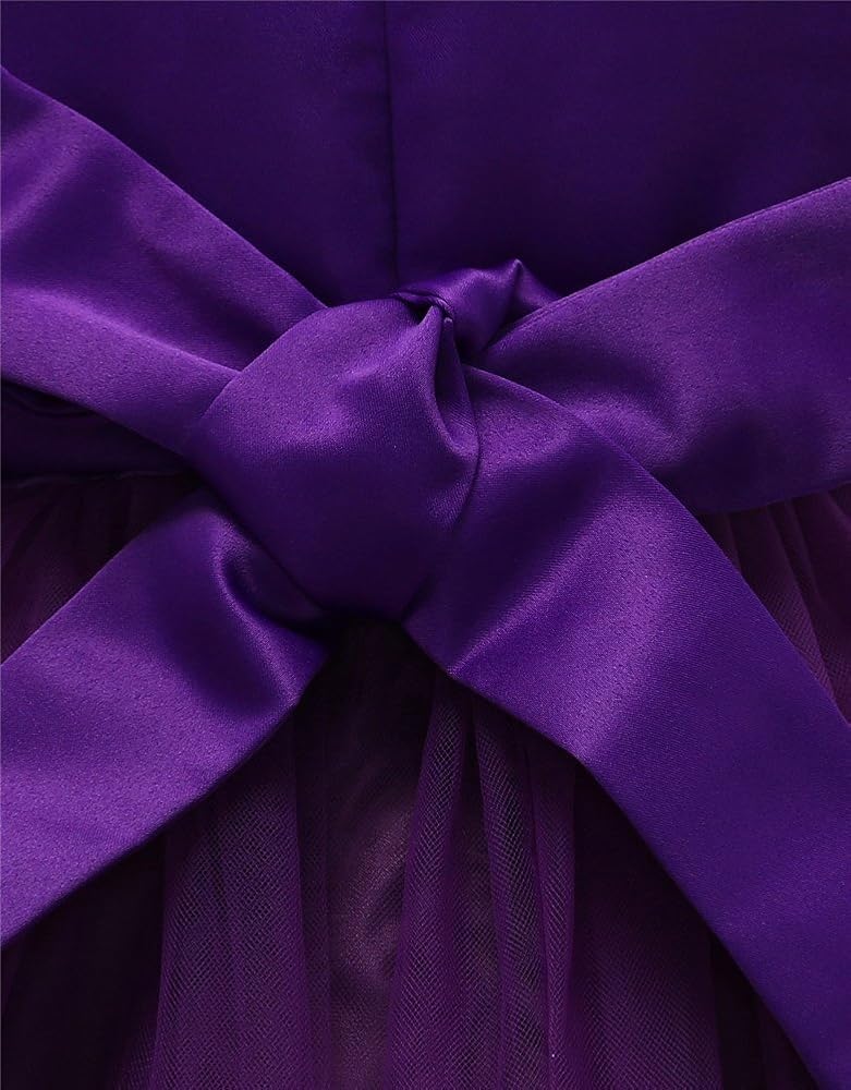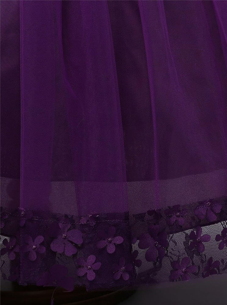 فساتين وصيفات الشرف للفتيات 8 9 سنوات طول الركبة الحجم 7-16 فتيات كبيرات الأطفال الأطفال الدانتيل tulle tulle ball مناسبة خاصة قمم الفتيات الحجم 9 تحت 25 (الأرجواني الداكن ، 12)