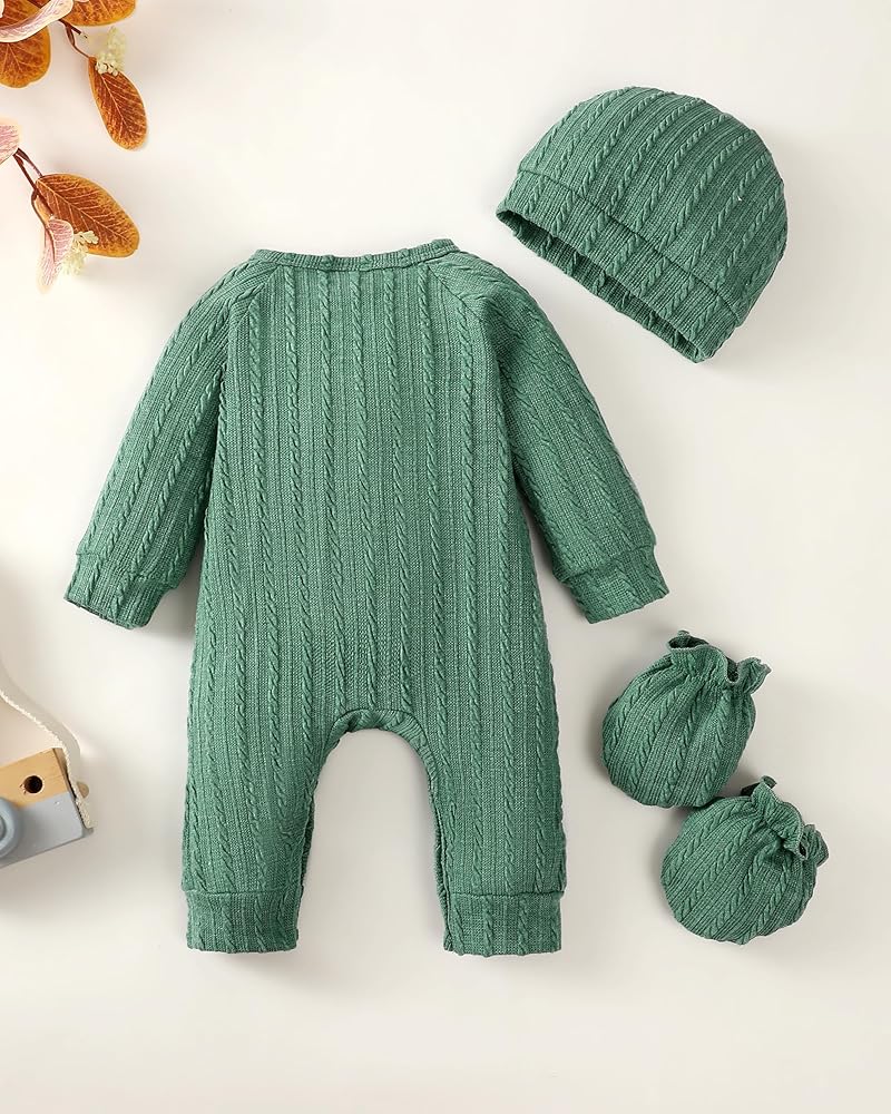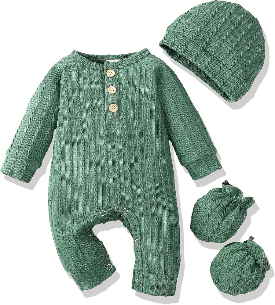 تصميمات فريدة --- الإغلاق المفاجئ لتغييرات حفاضات سهلة. يربط رضيع بوي مع تصميم الأزرار الأنيق ، ومطابقة القبعة الدافئة والقفازات التي تحمي طفلك من خدش نفسه. النسيج الآمن ذو اللون الصلب يضمن صحة طفلك الصغير.