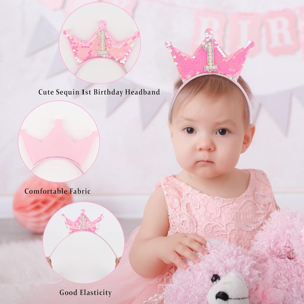 عقال عيد الميلاد الأول لطفلك: مصنوع من الترتر بالليزر عالي الجودة ، والبلاستيك والاسفنجة الناعمة ، هناك رقم بارز 1 في وسط عصابة ، وهو مصنوع من اللؤلؤ البيضاء وأحجار الراين الملونة ، مما يجعله إمدادات زخرفة رائعة ل فتاة عيد الميلاد الأولى
