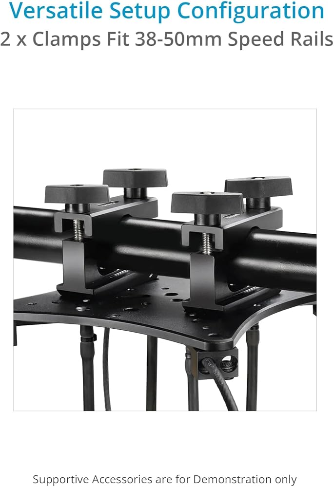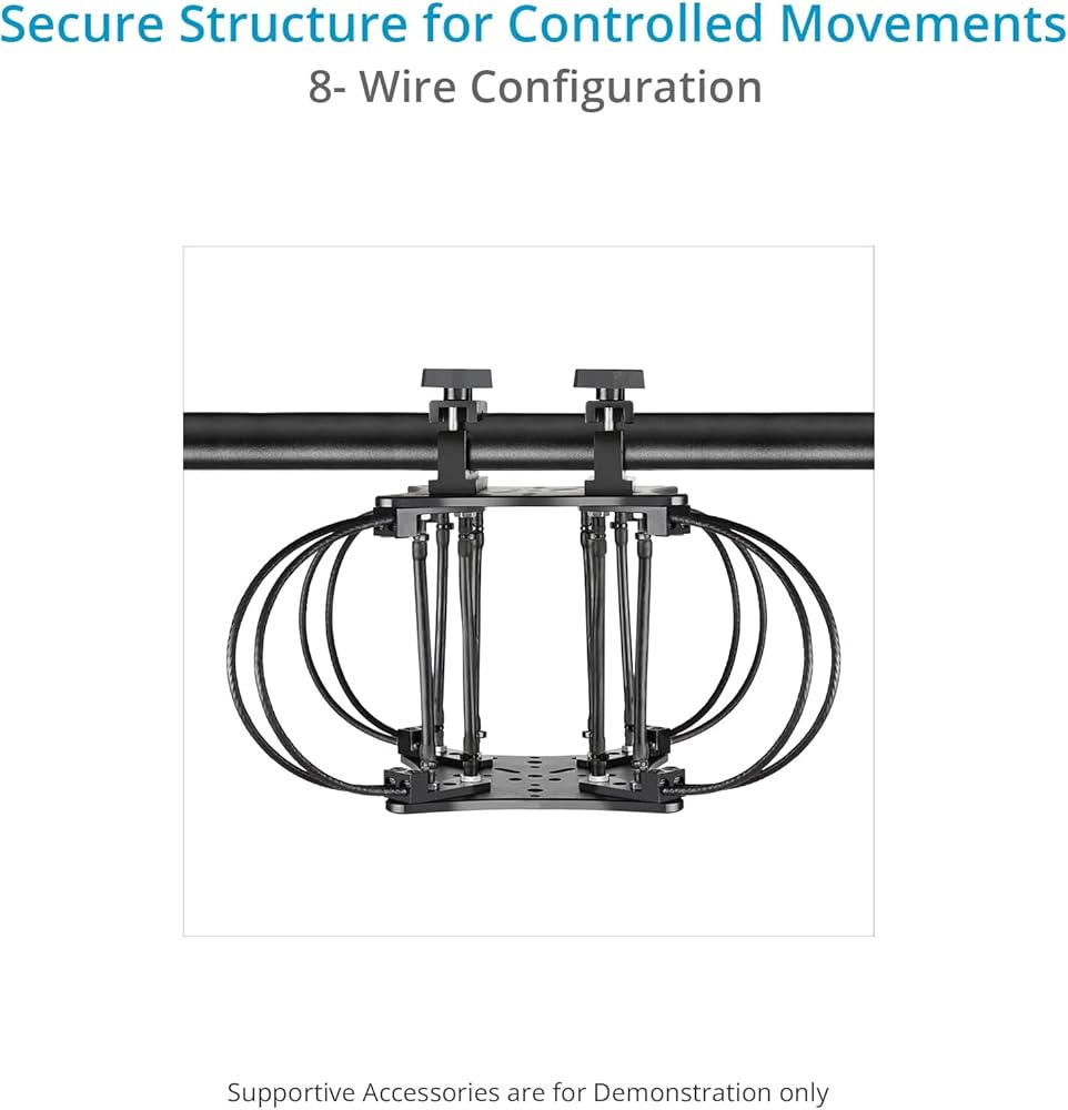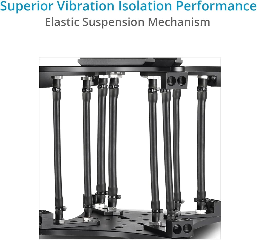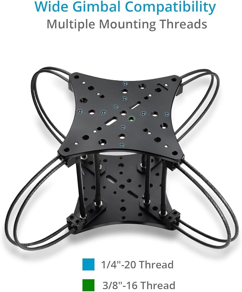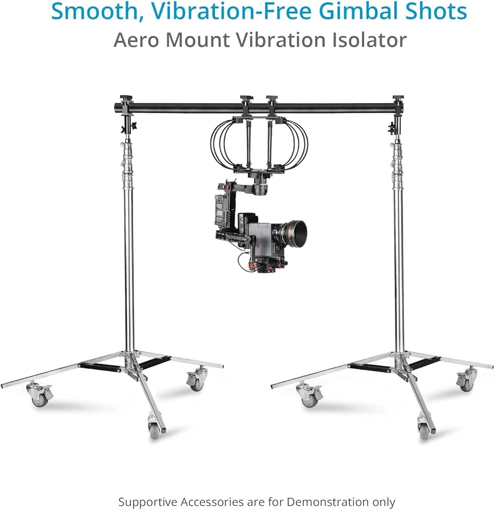 PROAIM Aero Mount Vibration Isolator is designed to transform shaky, unstable footage into smooth, cinematic shots, perfect for demanding film environments like dynamic car scenes. This cutting-edge gear expertly isolates vibrations to provide ultra-smooth results, enhancing stability for underslung gimbal setups. The Aero Mount offers superior vibration control and support by integrating elastic tubes and wire cables. The elastic suspension absorbs & isolates vibrations, while the wire cables ensure maximum stability and security. It supports both lighter setups with a 4-elastic tube configuration (0 to 10 kg) and heavier configurations with an 8-elastic tube setup (10 to 20 kg). The Aero Mount's modular design allows for flexible and precise configurations, featuring top and bottom cheese plates equipped with multiple threaded holes and pass-through slots, enabling compatibility with a variety of camera rigs. It fits rods from 38mm to 50mm and is compatible with popular gimbals. Streamlining the setup process, the Proaim Aero Mount quickly transforms any vehicle into an efficient filming rig, allowing you to focus on capturing high-quality, stable footage with minimal effort. Specifications Construction: High-Grade CNC Aluminum Compatible Gimbals: For 2 & 3S / RS 2, RS3, RS3 Pro & 4D Gimbal Load Capacity: 4‐ Elastic Tube Setup: 0‐10kg/0‐22.05lb 8‐ Elastic Tube Setup: 10‐20kg/22.05 ‐44.09lb Mounting Points: Multiple 1/4"‐20, 3/8"‐16 Threads Multiple 5/16", 3/8" Pass‐Through Holes Clamping Range: 38mm – 55mm Elastic Tube Diameter: 8mm Wire Cable Dimensions: Diameter x Length: 6 x 380mm Product Weight (without Packing): 3.3kg/7.27lb Product Gross Weight (with Packing): 3.7kg/8.1lb IN THE BOX Proaim Aero Mount Vibration Isolator / Gimbal Support (Lightning Rod) 2 x Cheese Plate 2 x Clamps 8 x Elastic Tube 8 x Wire Configuration 2 x Allen Bolts (Size: - 1/4“x 1”) 2 x Washers Cable tie 1m Elastic Tube 1 x Spanner (Size: -14 &15mm) 1 x L- Type Allen keys (Size: -3/16”)