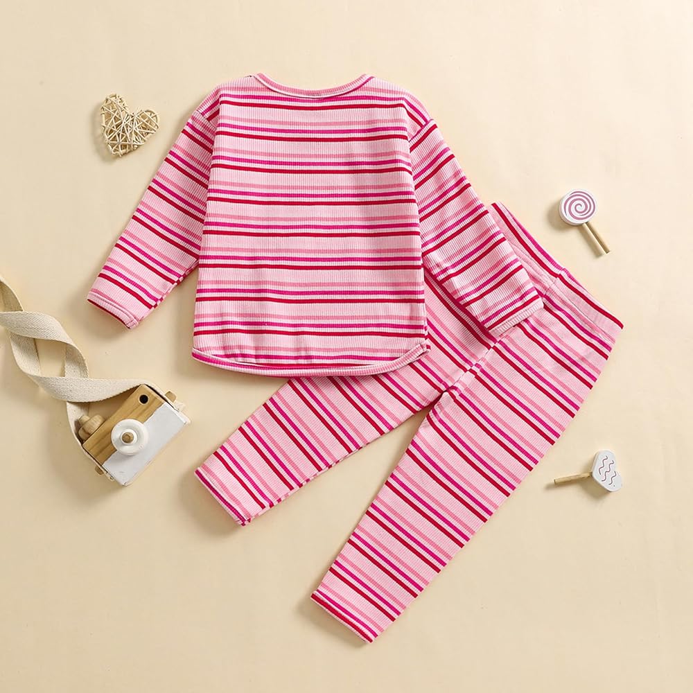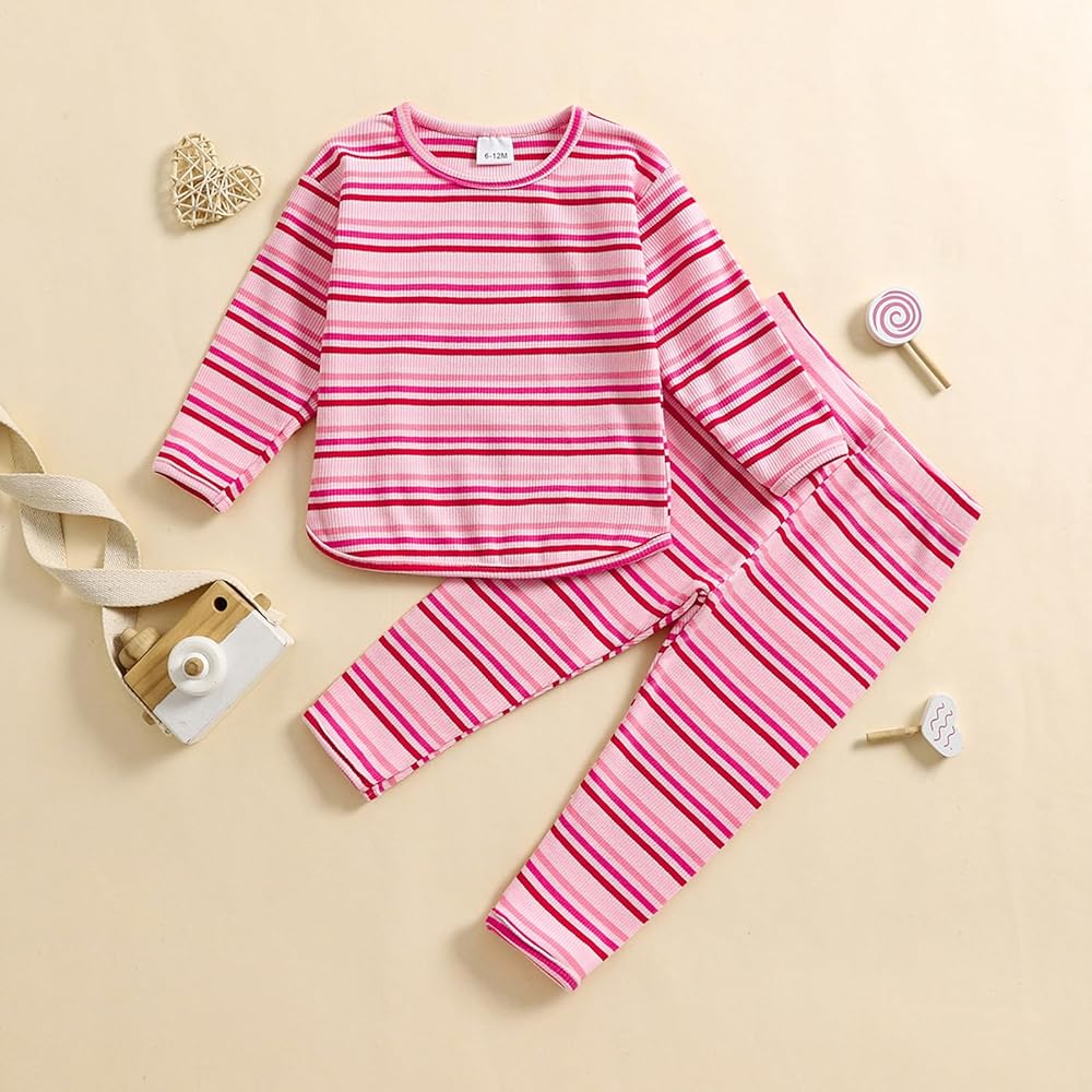 المواد: أعلى سترة مخططة ومجموعة البنطلون ، فتيات الأطفال الصغار يسقطون ملابس ، قمم طويلة الأكمام وسروالها ، مجموعة متماسكة الشريط ، مجموعة سروال متماسكة ، مجموعة مخططة متماسكة ، قطنية وبلويستر ، ممتقة ، خفيفة الوزن ومريحة