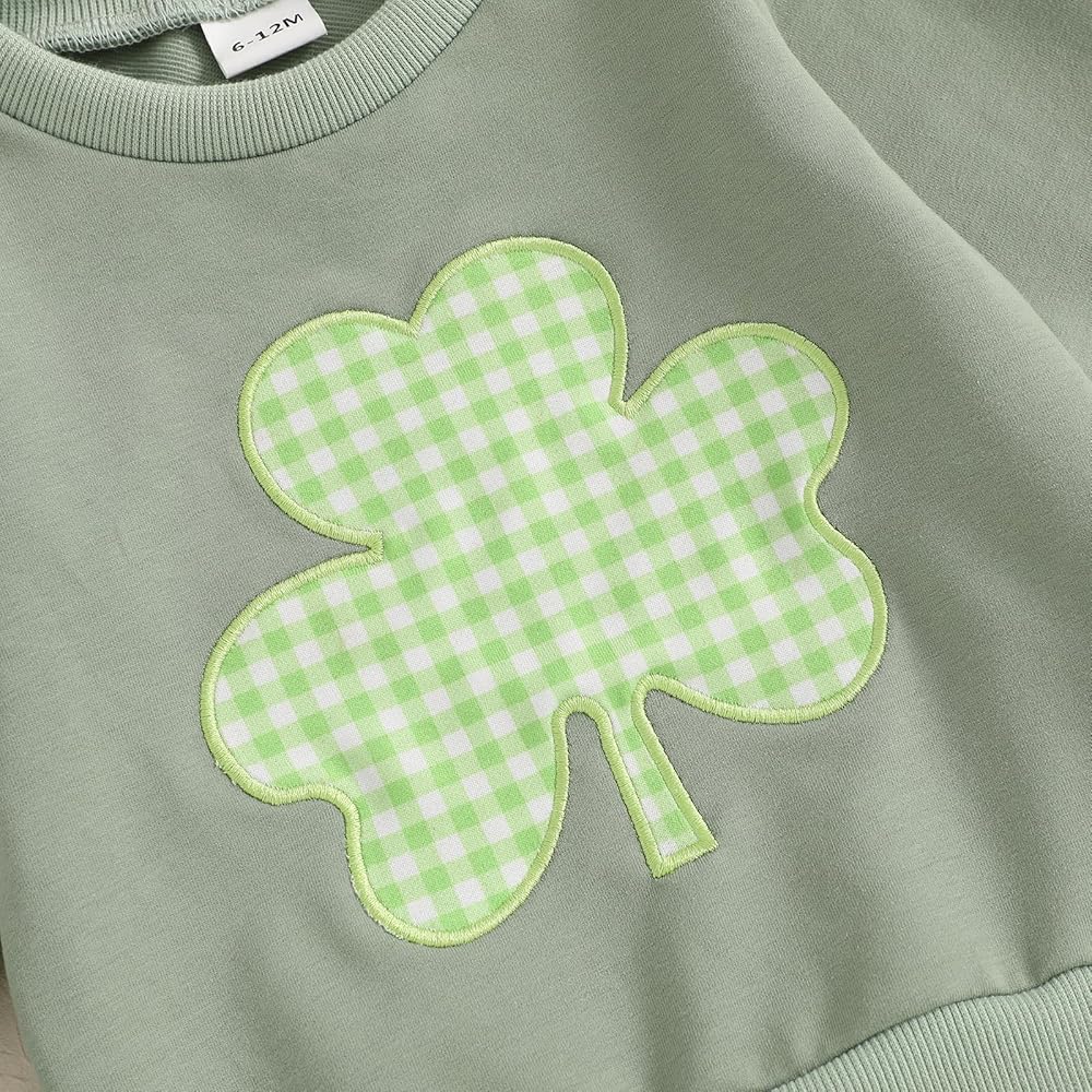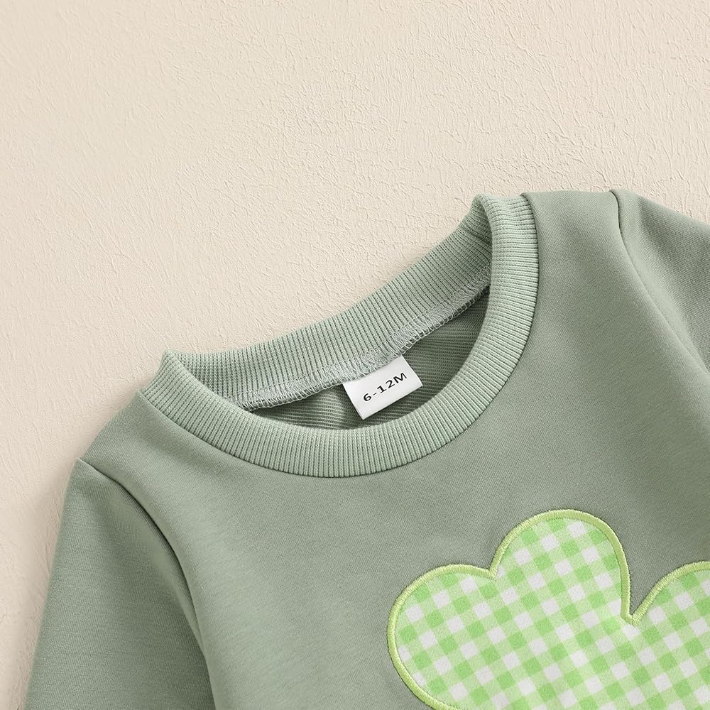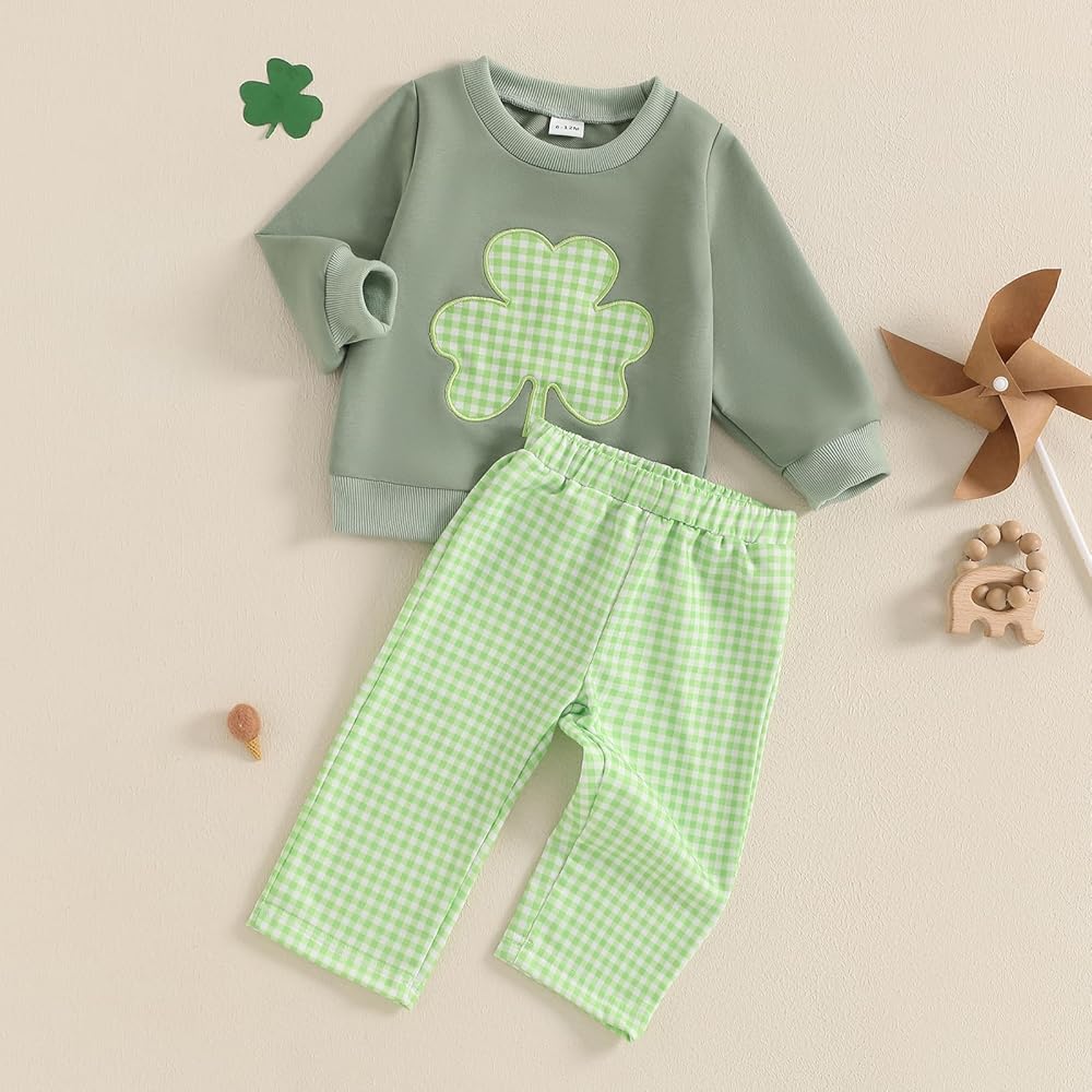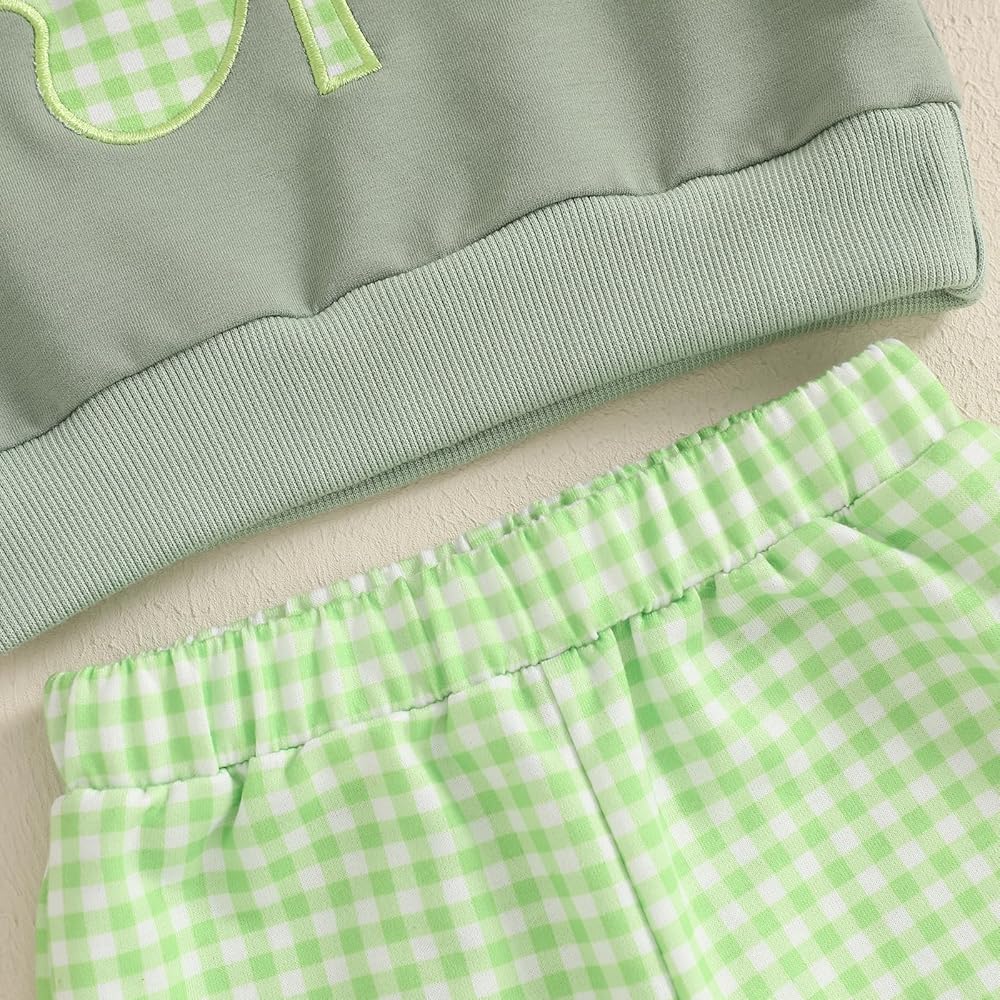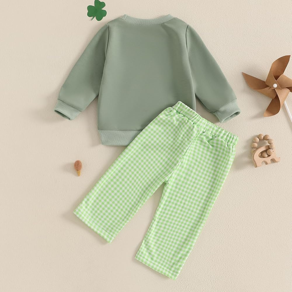 Toddler Baby Boy St. Patricks Day Outfit Long Sleeve Shamrock Sweatshirt Green Plaid Long Pants Clothes Set