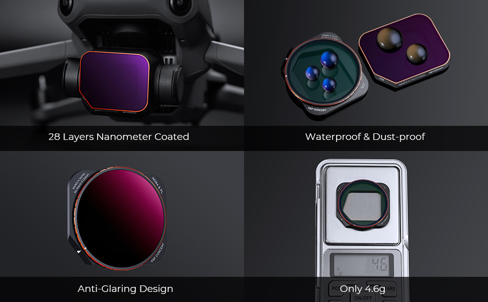 【لا تؤثر على تقنية Gimbal】 K & F Concept ، تضمن تقنية الوزن الخفيف للغاية أن يمر كل إطار مرشح بإجراء اختبار صارم دون التأثير سلبًا على Gimbal بدون طيار ، ويبلغ وزنه 0.7 جرام فقط.