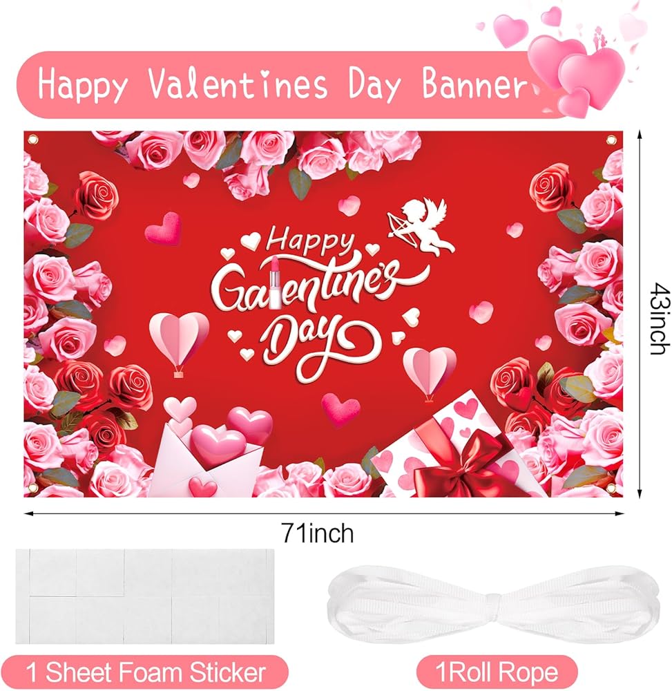 ديكور قابل لإعادة الاستخدام: مصنوعة من لافتة عيد الحب من البوليستر الخفيف ودائم ، ويلمس ناعمة ويمكن غسلها وتطويها لتخزينها لفترة طويلة. عندما لا تستخدم ، يسهل إزالته دون أي ضرر على الحائط.