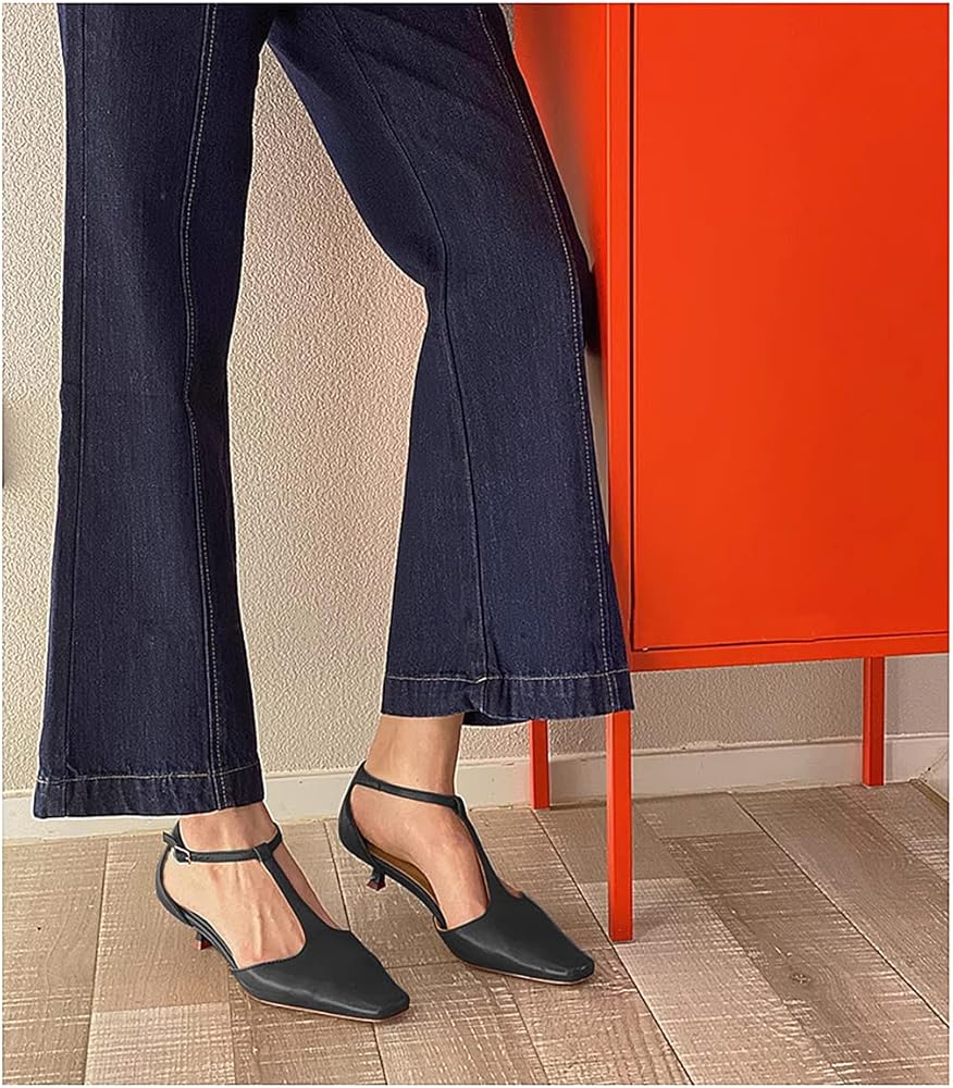 • 👠 LOW KITTEN HEEL: This square toe t-strap mary jane pumps has a heel of about 1.57IN(4CM). This is a very comfortable scientific height that you can walk or stand in for long time without making your feet feel uncomfortable.