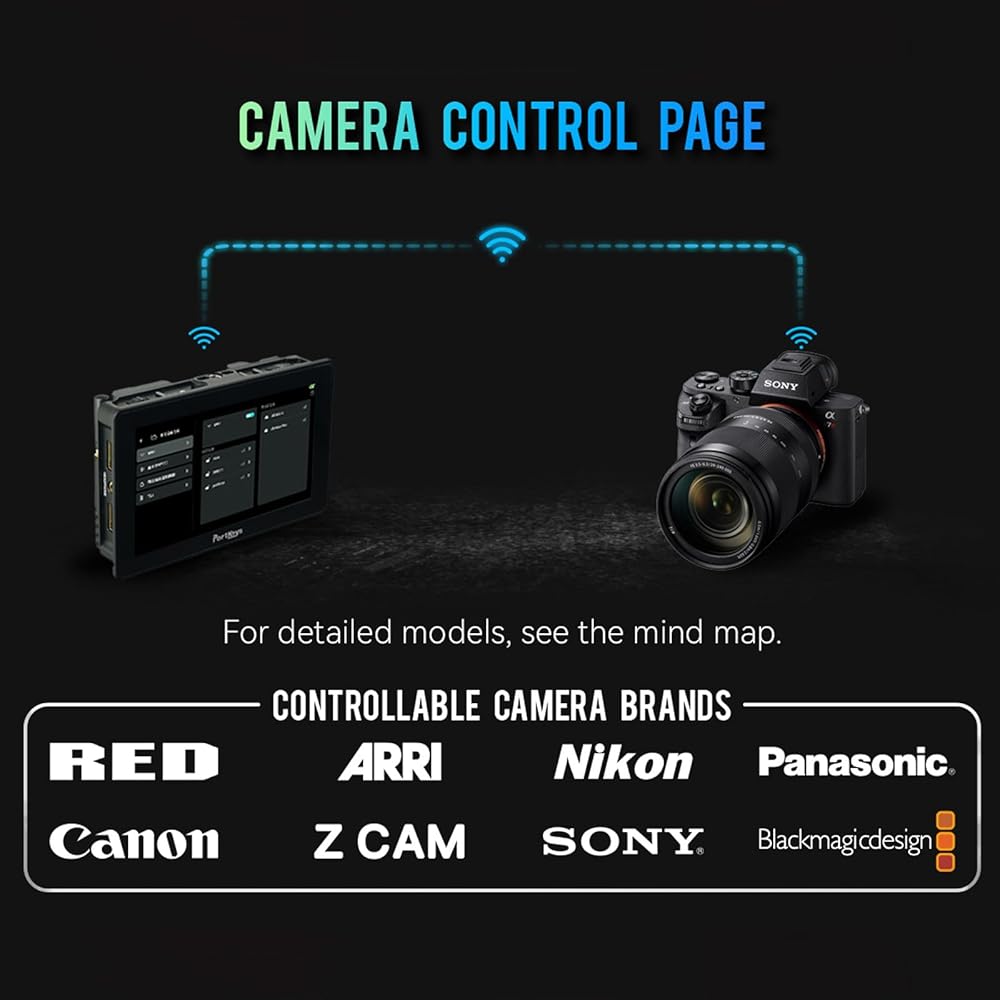 Wireless&Wired Control: Portkeys BM5IV WR supports wireless control BMPCC 4K/6K, EOS R5/R6/R8, BGH1/BS1H, wired control many cameras such as , FX30/FX6/FX9/A7S III/A7R IV, C70/C200/C300, GH5 II/GH6/S5, ZCAM E2 etc