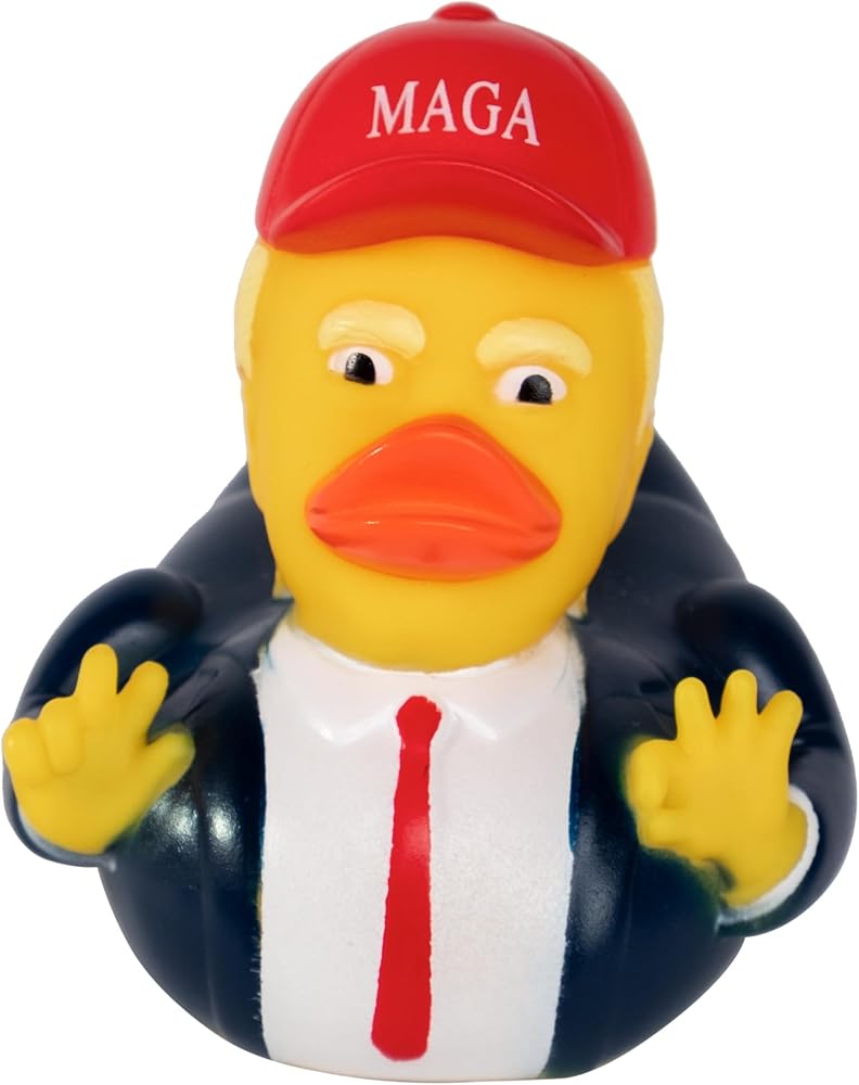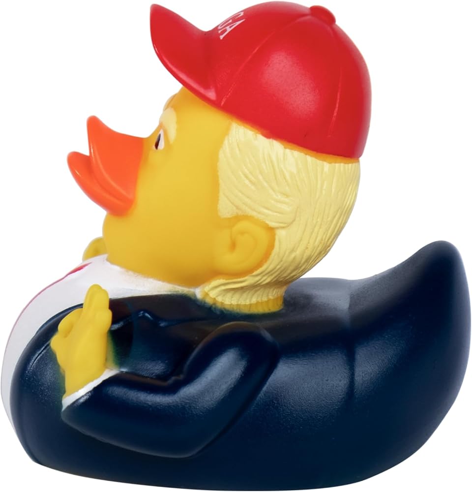 Unique Design: Featuring the iconic hairstyle, suit, and signature gesture, our Rubber Duck embodies the spirit of a well-known personality. It's a playful and satirical take on a prominent figure that's bound to turn heads.