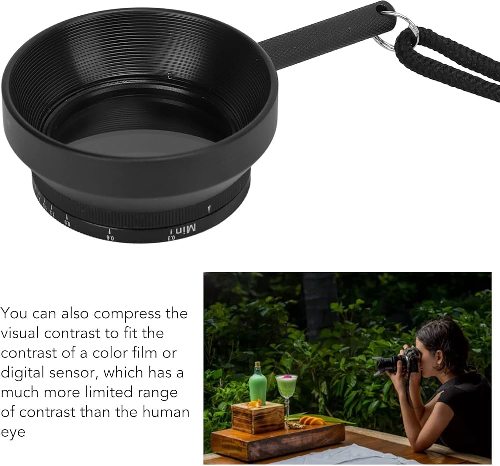 Filter Factor: The 9 gears density viewing filter is a variable neutral density viewing filter with a 2x to 512x filter factor that allows you to pre visualize exposures based on lighting conditions used in film and photography.