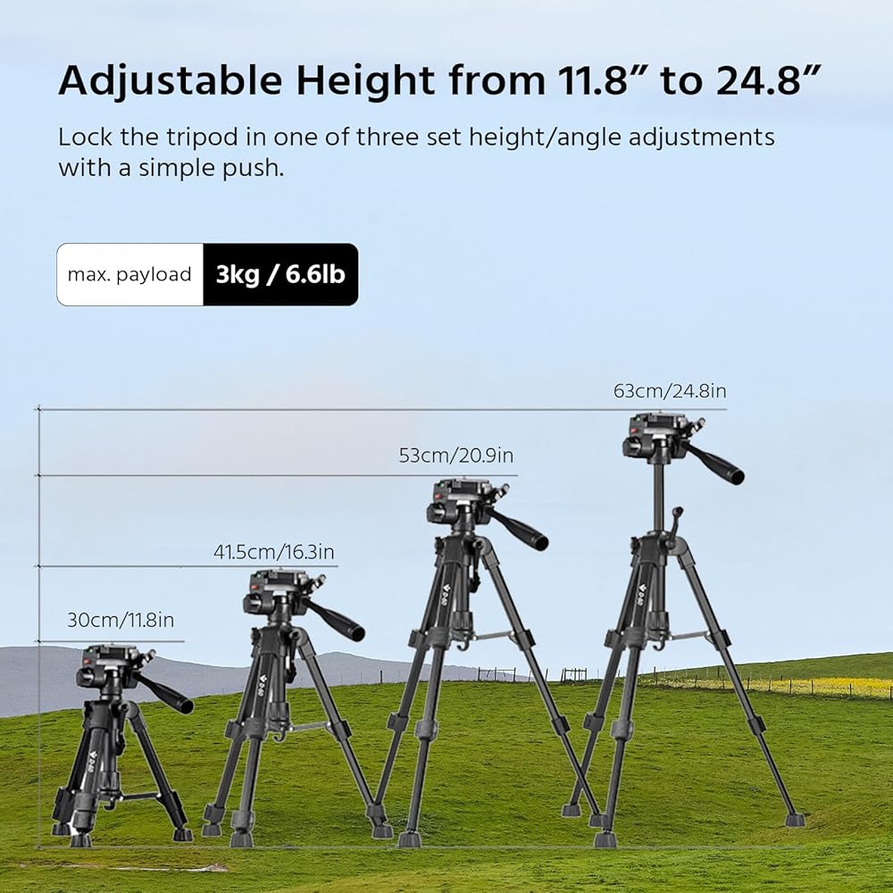 【المرونة والقابلية للضبط】 يضبط ترايبود Rozoer Mini Mount بسهولة من 11.8 في/30 سم إلى 24.8 في/63 سم ، مما يوفر قدرة مثالية على التكيف مع مواقع مختلفة واحتياجات الاستخدام.