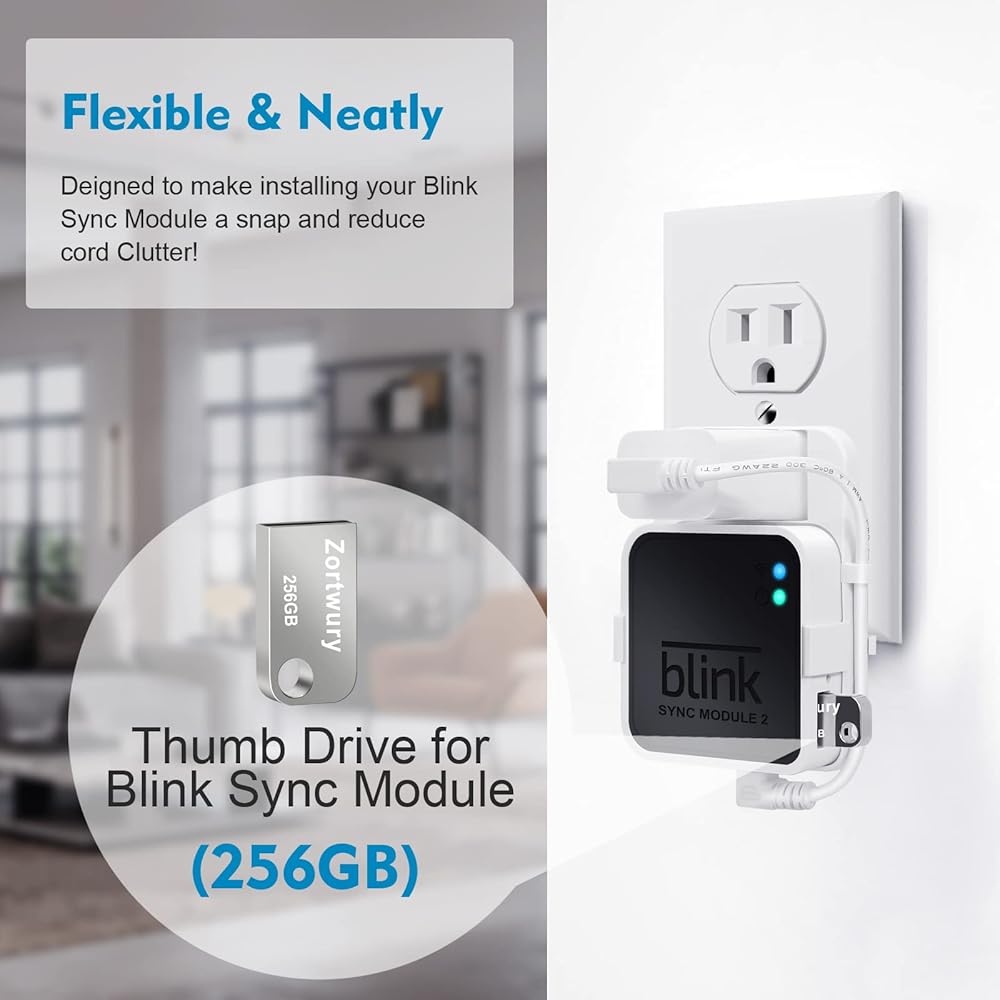ذاكرة فلاش USB بلينك سعة 256 جيجابايت لتخزين الفيديو المحلي مع وحدة مزامنة بلينك 2 تثبيت، حامل سهل الحركة لتوفير المساحة لكاميرا المراقبة الخارجية والخارجية (وحدة مزامنة بلينك 2 غير متضمنة)