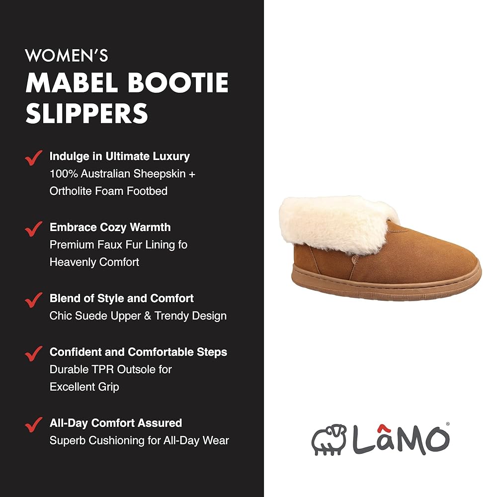 Lamo Women's Mabel Bootie Slippers for Women - Premium Suede Apper ، بطانة الفراء الفاخرة الفاخرة ، وعضلة رغوة الأرثوذالية مع جلد الغنم الأسترالي ، و Bootie New Women’s Bootie