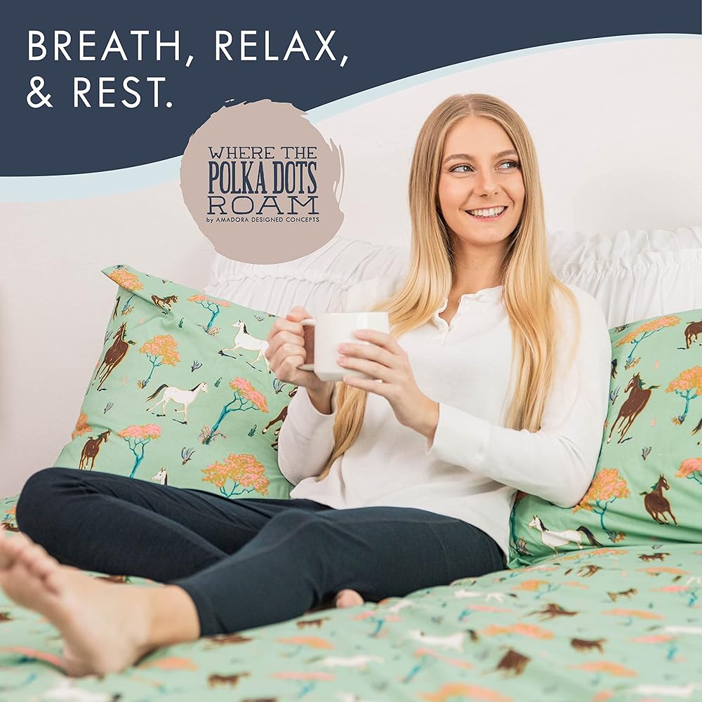 حيث تتجول نقاط البولكا في مجموعة أسرة الخيول - أوراق حيوانات على طراز المزرعة الغربية للأطفال ، والأولاد ، والبنات - تشمل ورقة واحدة مجهزة ، وصفيحة مسطحة واحدة ، ووسادة واحدة - خيول سرير ذات حجم مزدوج الحجم