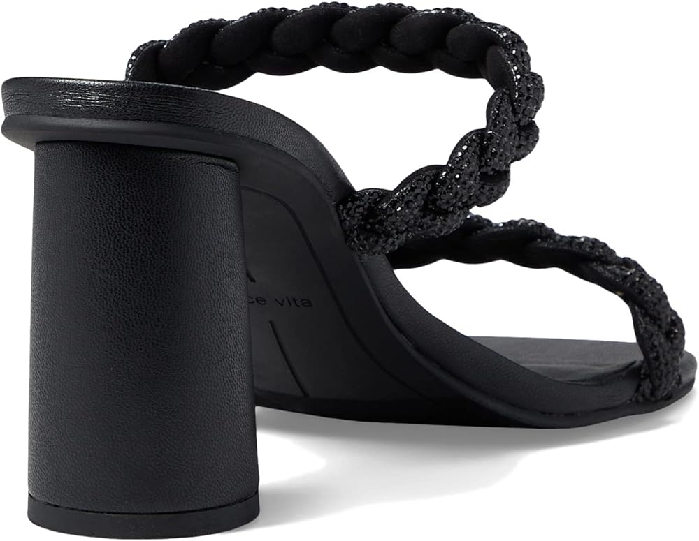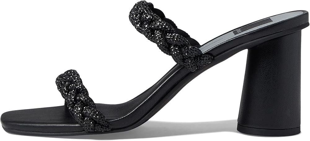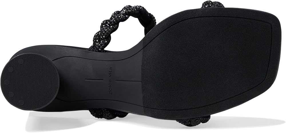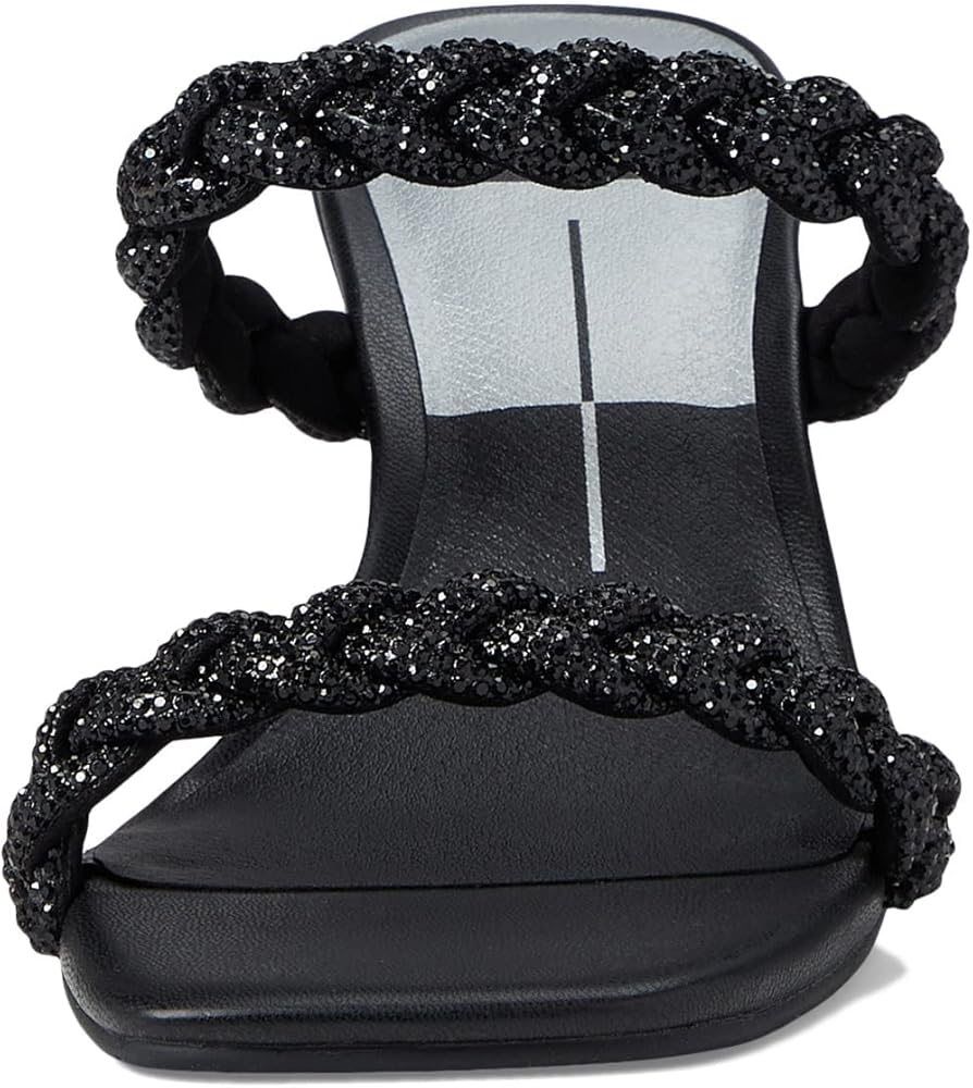 Add a touch of elegance for your next special occasion in the Dolce Vita Nariko Rhinestone sandals. Slip-on style. Square, open toe silhouette. Braided straps with rhinestone embellishments. Column heel. Textile upper. Textile and synthetic outsole.