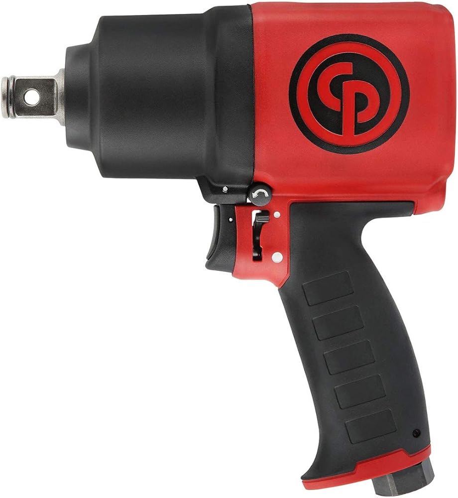 CP7769 Heavy Duty 3/4-In. Impact wrench from Chicago Pneumatic comes with a simple one-handed forward/reverse switch. Torque tool is designed with a low air consumption motor in order to save energy. This air wrench features a full teasing trigger to deliver precise control and better functionality. Pneumatic torque wrench is equipped with an insulated and lightweight composite handle for maximum user comfort. The air-powered wrench is manufactured using high-quality composite material for enhanced durability and longer life. This high torque wrench is a suitable for general maintenance activities.