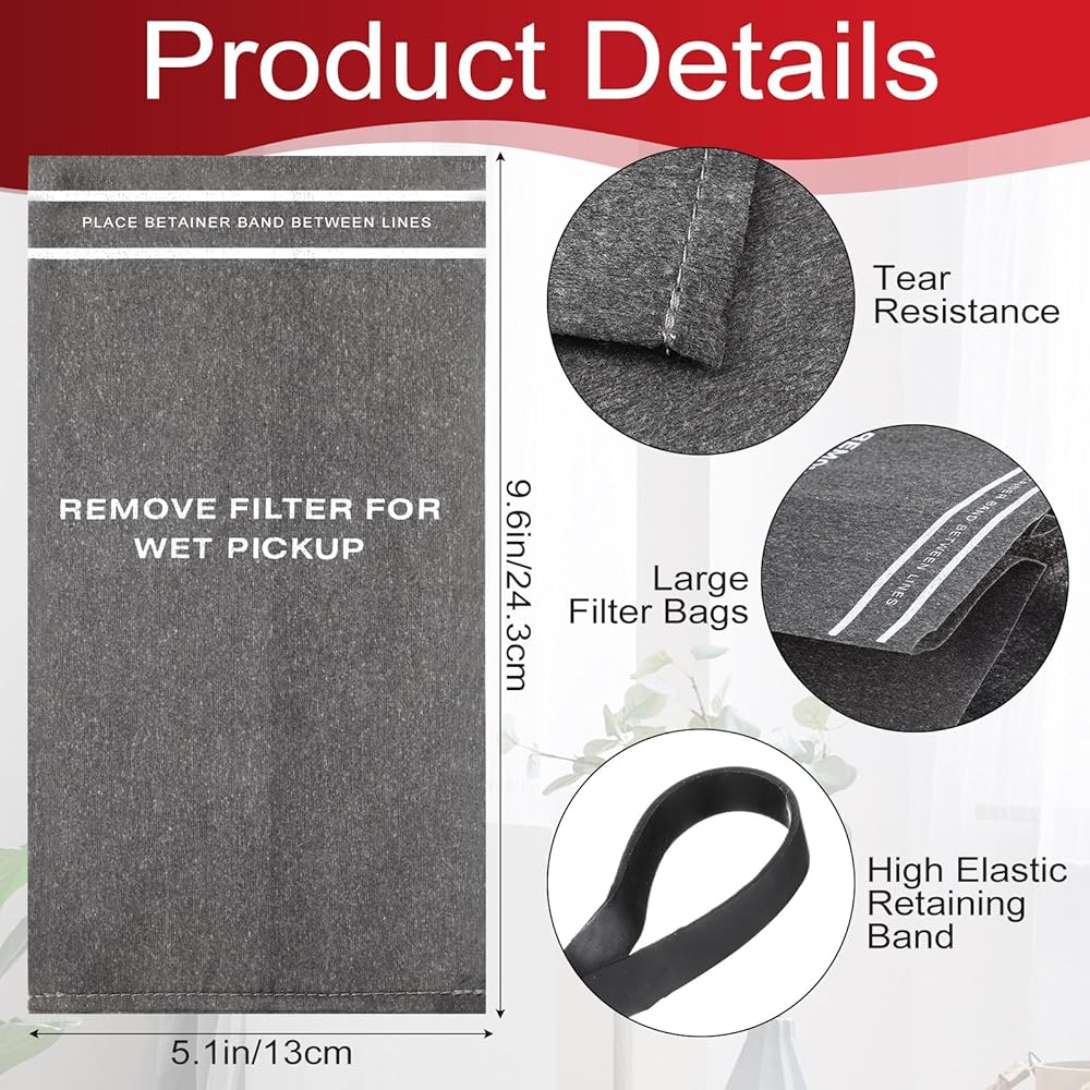 Package Include: you will receive 24 wet dry vac filter bags and 8 retaining bands; A nice set of replacements for everyday usage; Our vacuum bags efficiently collect everyday household particles such as dust, dirt, and sand, maintaining a clean and organized home, workplace, or company