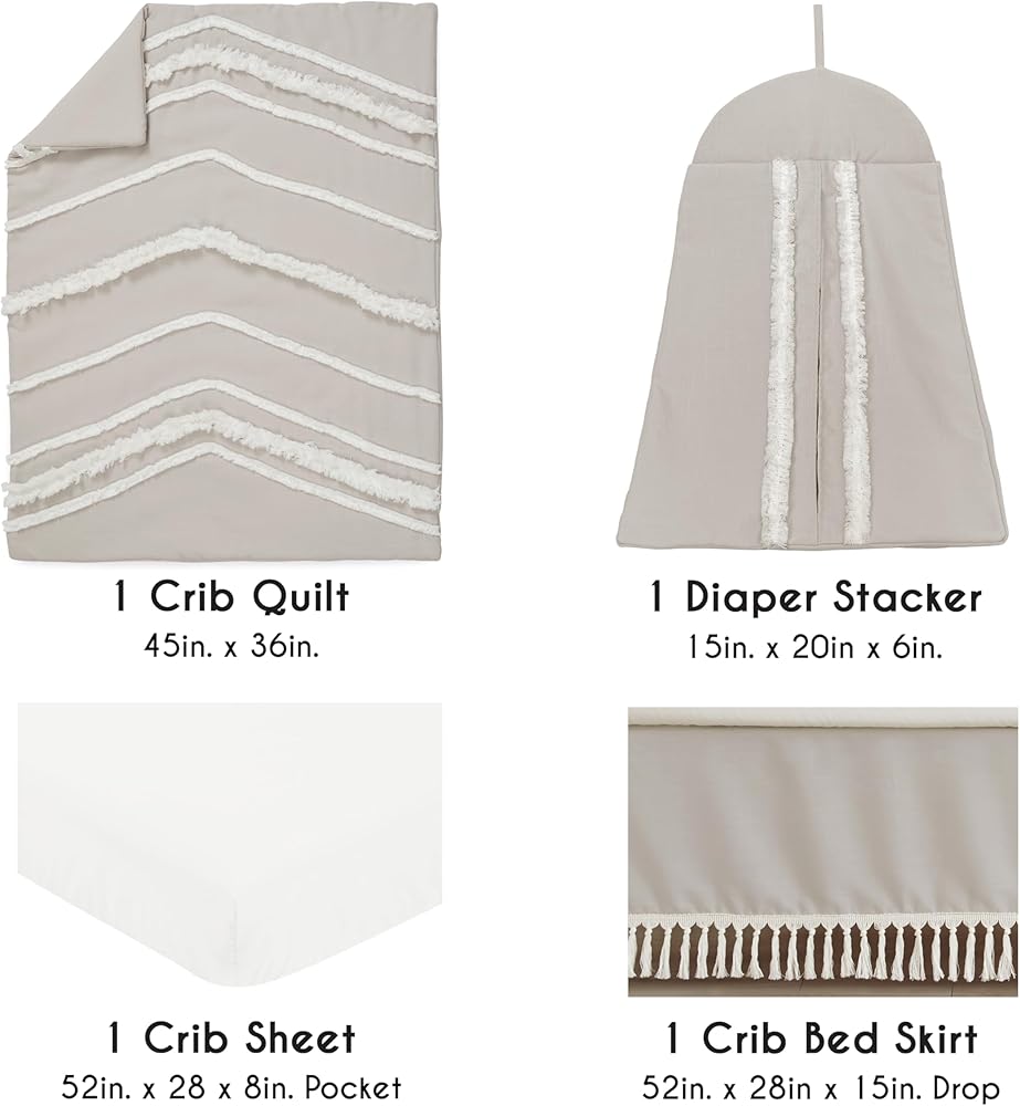 تتضمن مجموعة 4 قطع: بطانية سرير ، ورقة سرير مجهزة ، تنورة سرير ، ومكدس حفاضات