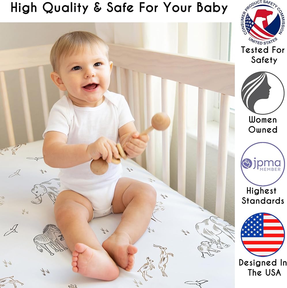 أضف حزمة ولعب ورقة Bassinet إلى قائمتك التي يجب أن تكون من أجل المولود الجديد! هذه الورقة السحرية المستطيل هذه ممتدة ومريحة لمنح الرضيع الخاص بك الإعداد المثالي لقضاء ليلة سعيدة. تم تصميمه بعناية مع مخيط مرن حول الحافة السفلية بالكامل للورقة لتناسب آمن على معظم الباسينات ذات الحجم القياسي ، والحزمة واللعب أو اللعب السحرة ، والهود ، بجانب النائمون ، وأشكال المرتبة البيضاوية ، الساعة الراقية والمستطيل.